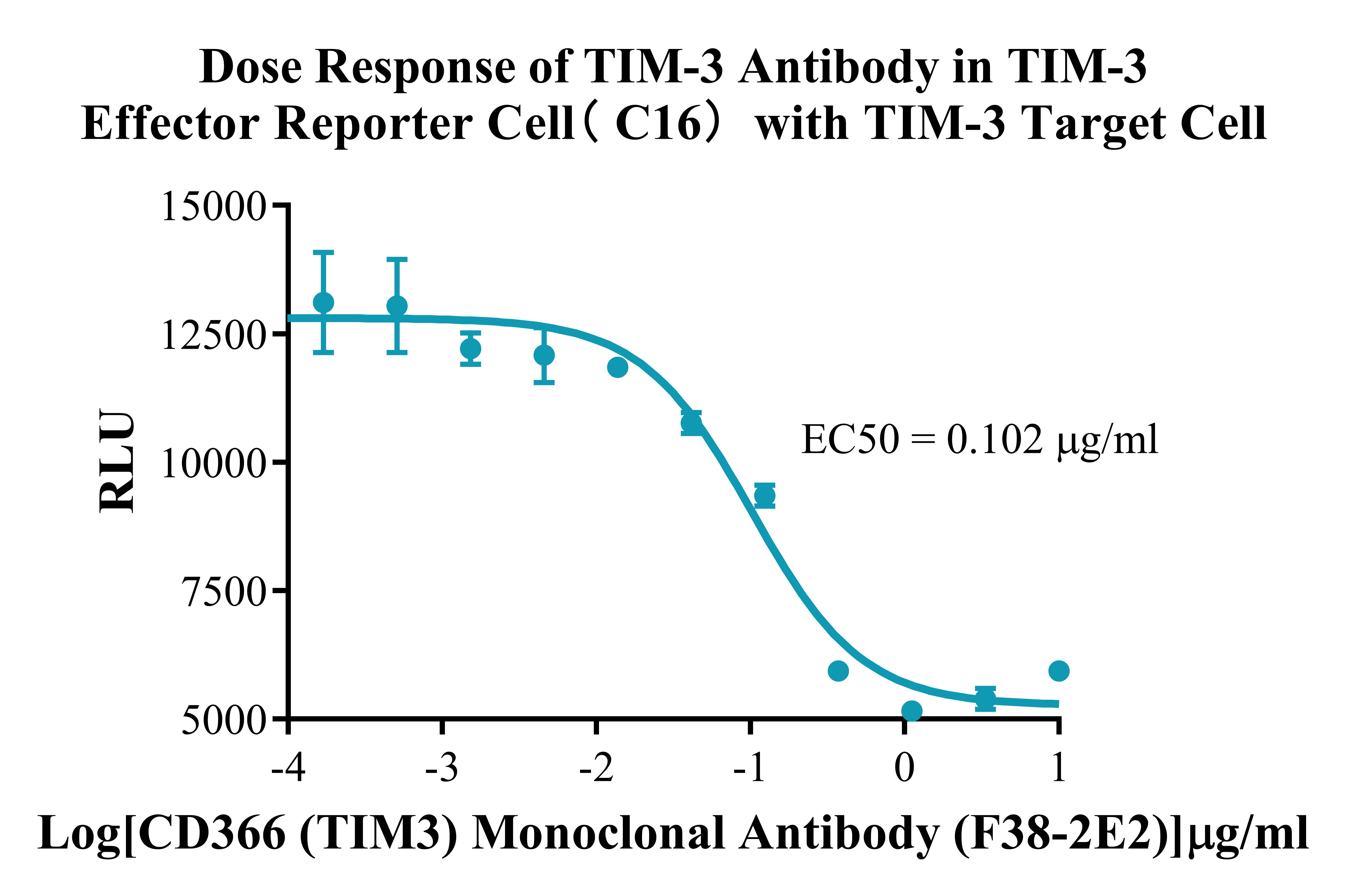 Figure 2. Dose Response of TIM-3 Antibody in TIM-3 Effector Reporter Cell(C16) with TIM-3 Target Cell. |