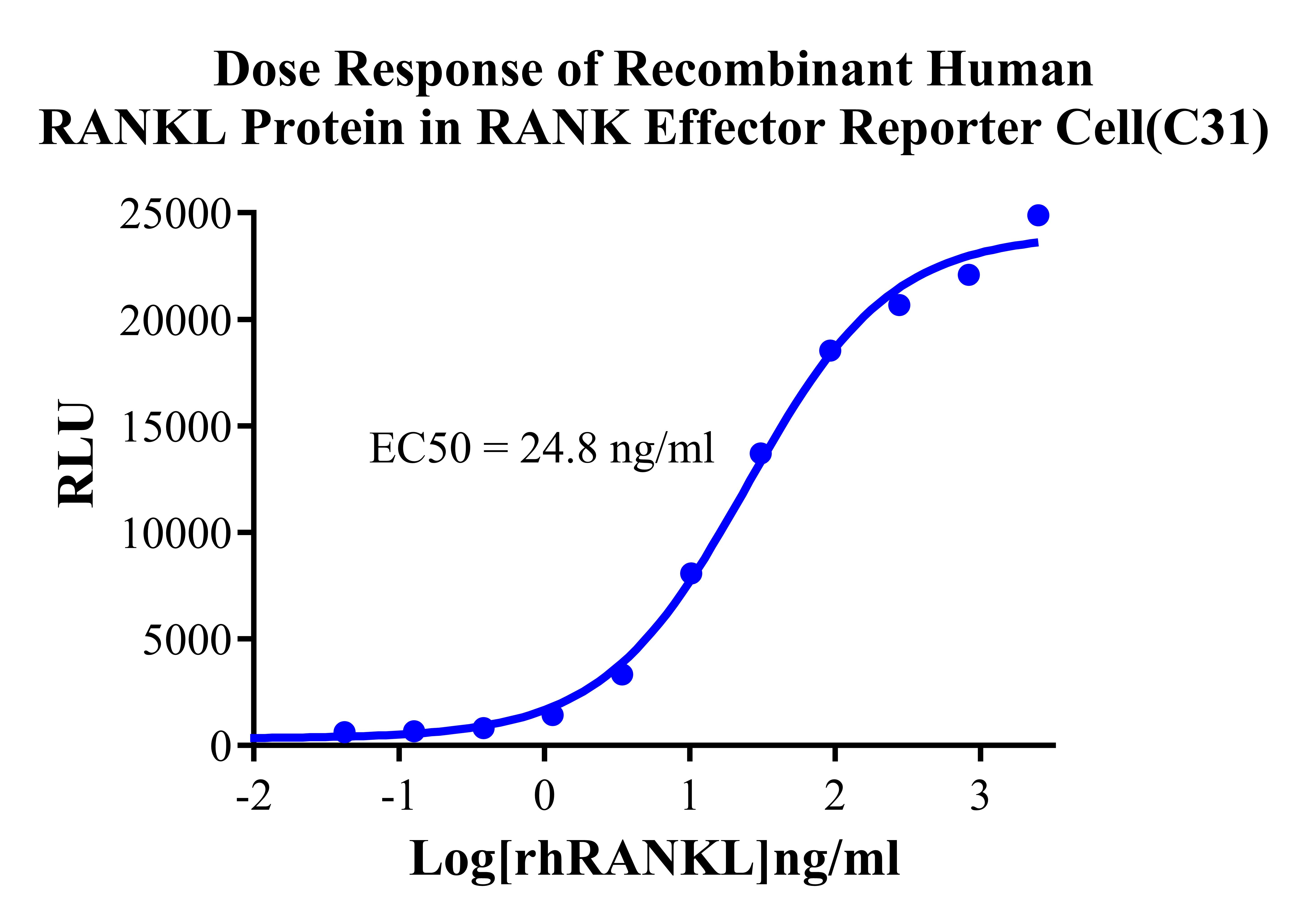 Figure 2. Dose response of  Recombinant Human RANKL Protein in RANK Effector Reporter Cell (C31).