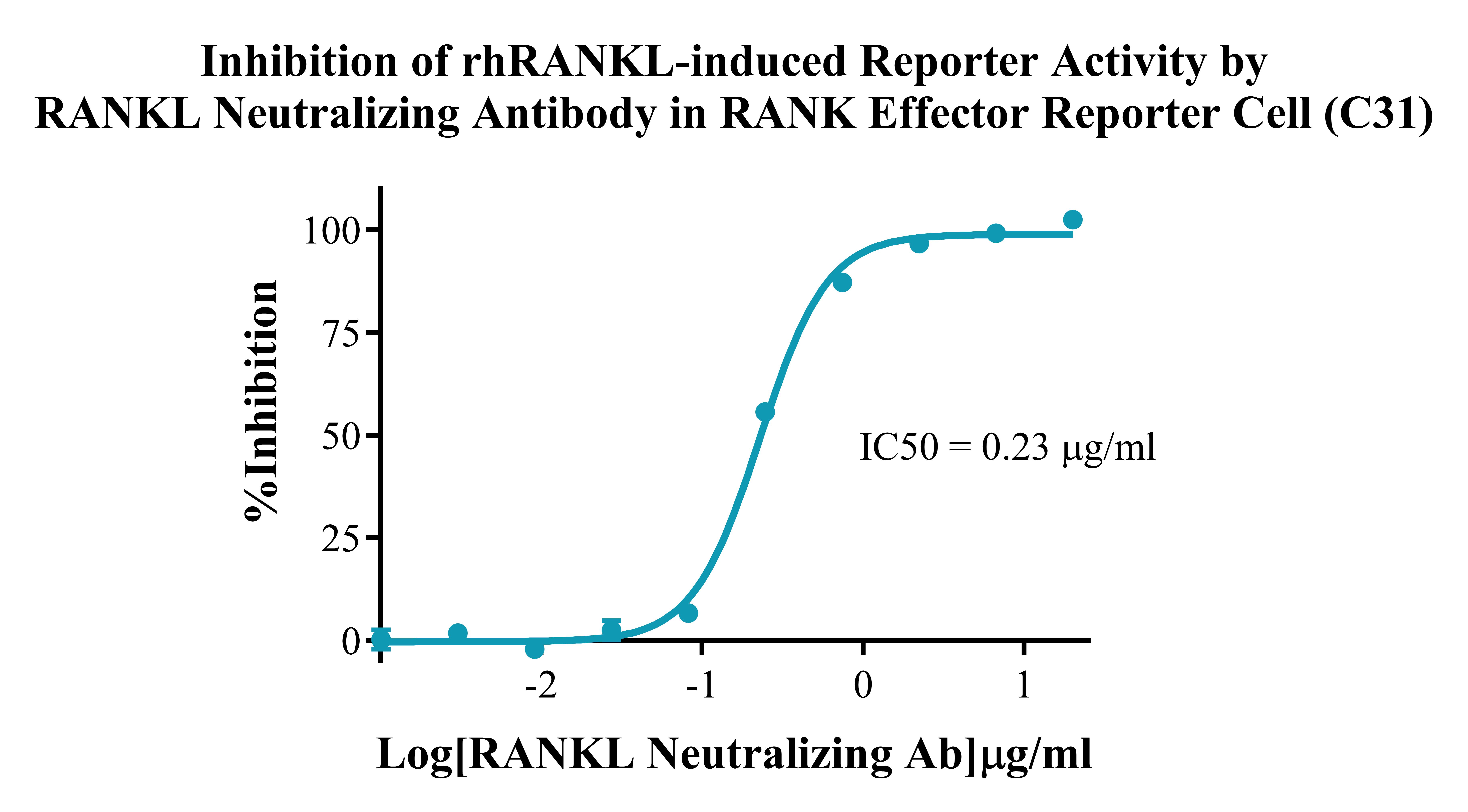 Figure 3. lnhibition of rhRANKL-induced Reporter Activity by RANKL Neutralizing Antibody in RANK Effector Reporter Cell(C31).