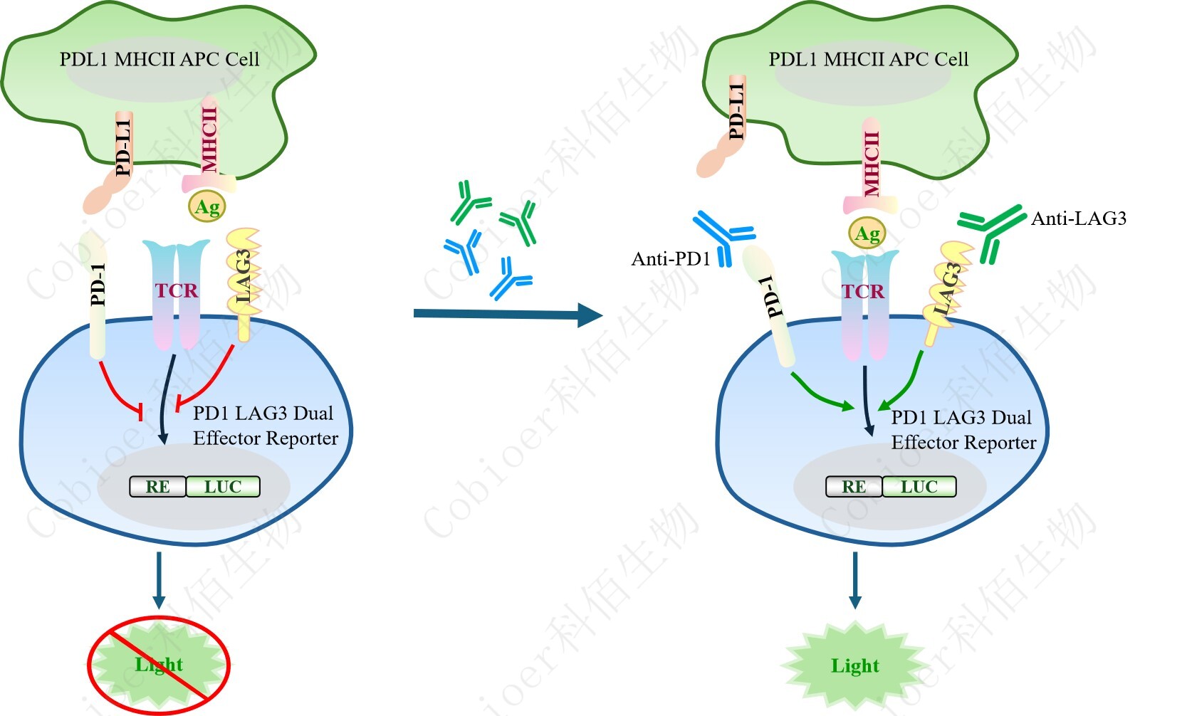 Figure 1. PD1 LAG3 Dual Effector Reporter Cell 細胞模型原理圖