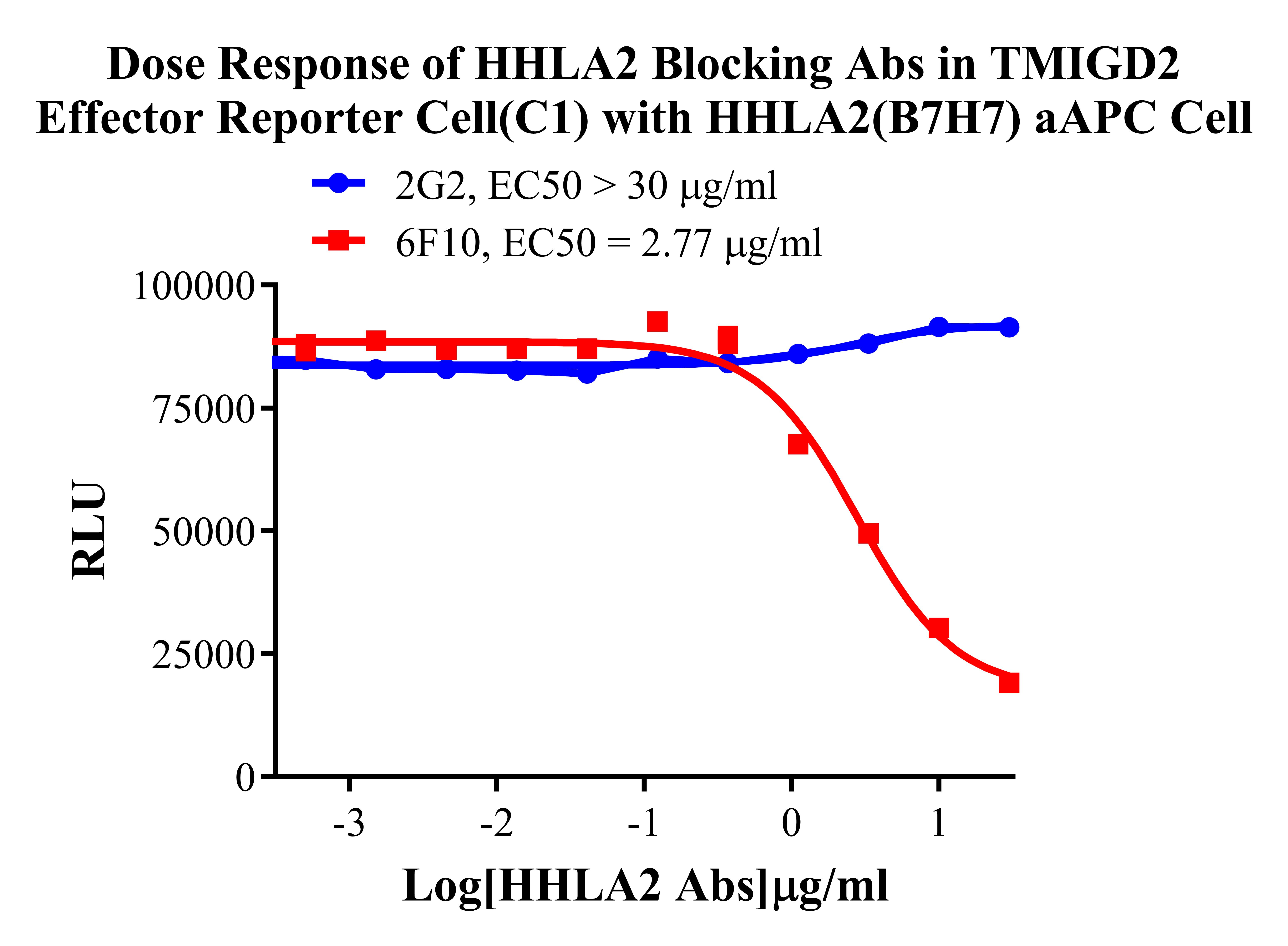 Figure 4. Dose Response of HHLA2 Blocking Abs in TMIGD2 Effector Reporter Cell(C1) with HHLA2(B7H7) aAPC Cell. |