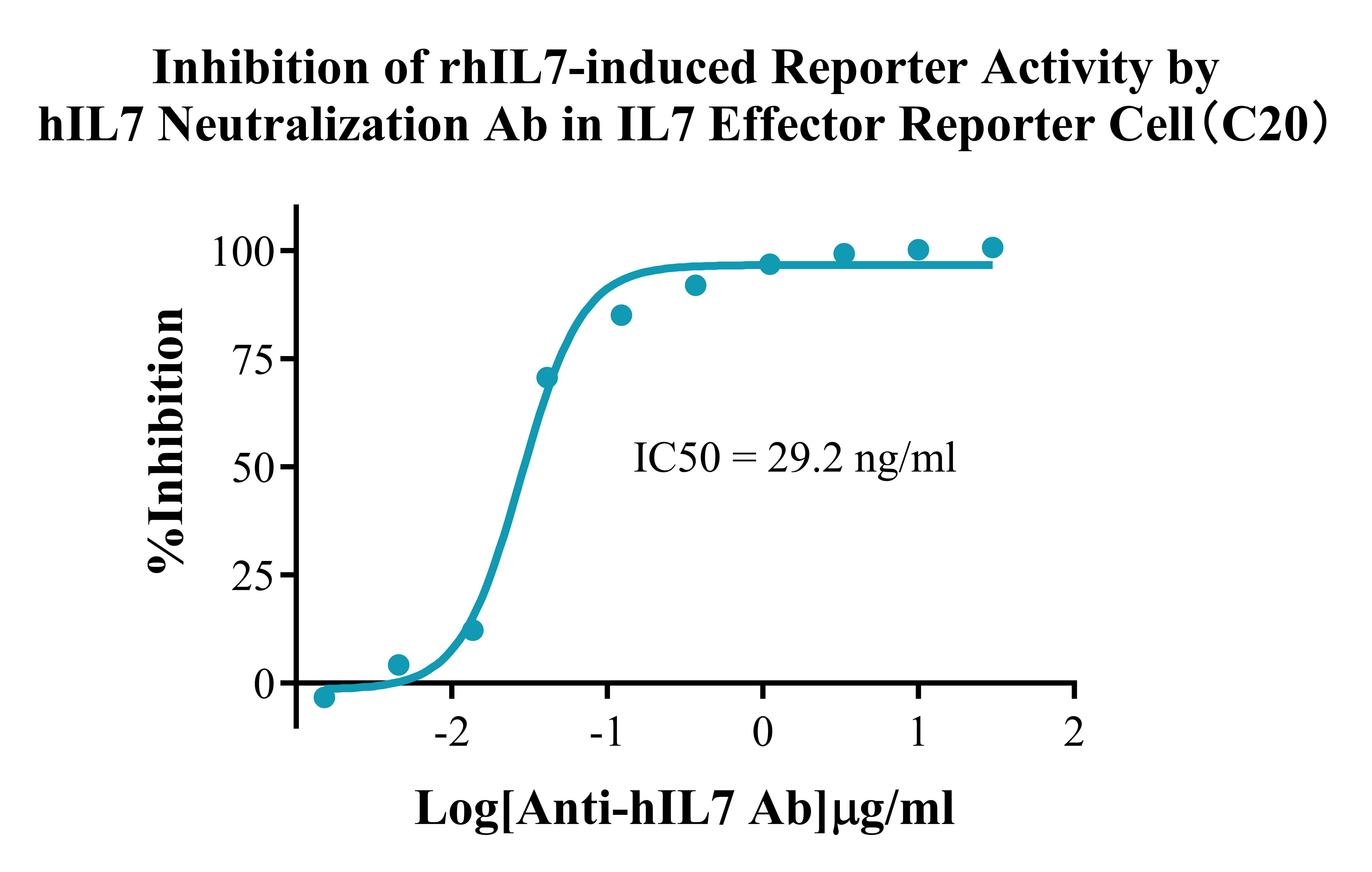 Figure 4. Inhibition of Human rhIL7-induced Reporter Activity by hIL7 Neutralization Ab in IL7 Effector Reporter Cell(C20).