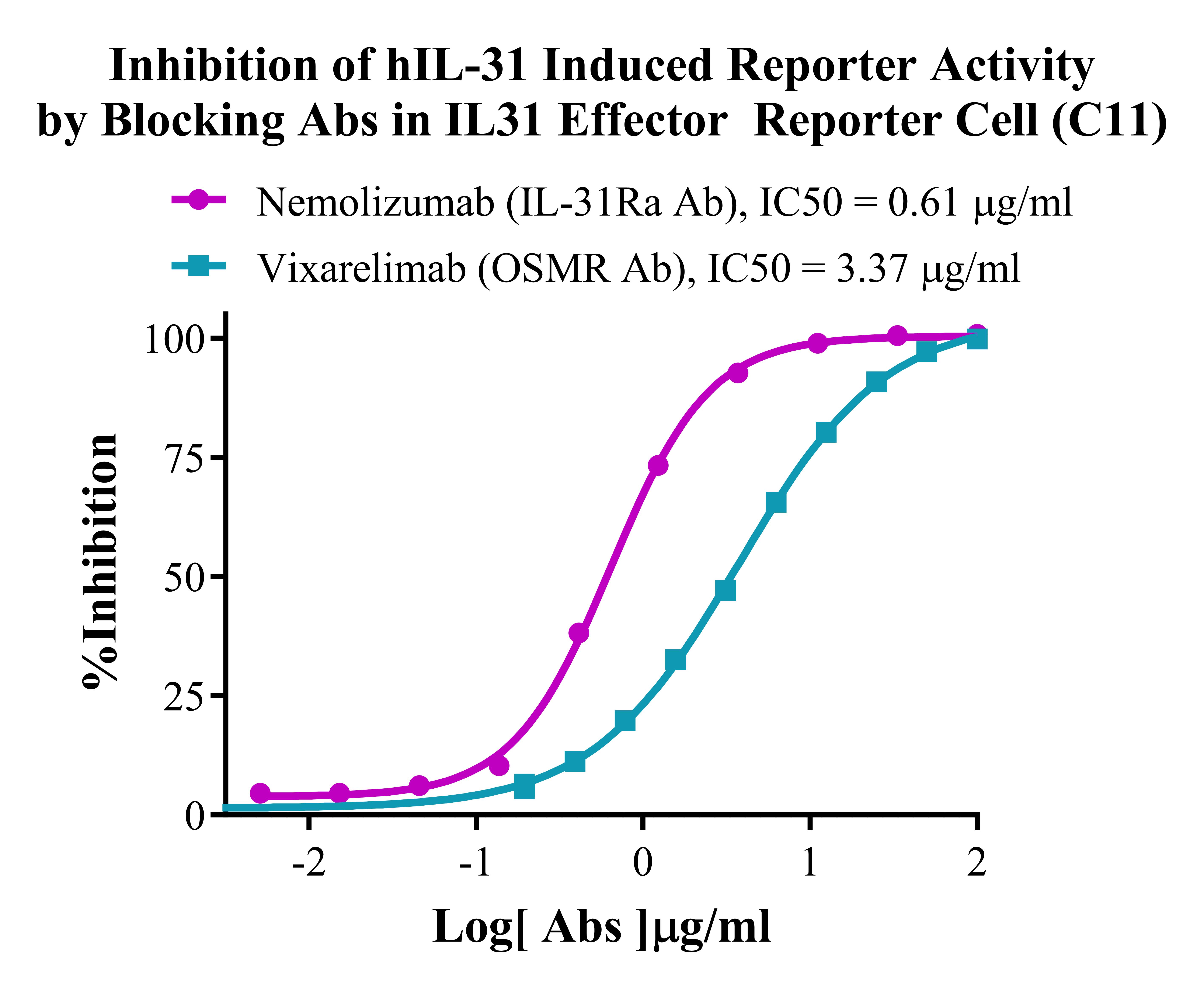 Figure 4. Inhibition of hIL-31 Induced Reporter Activity By Blocking Abs in IL31 Effector Reporter Cell (C11).
