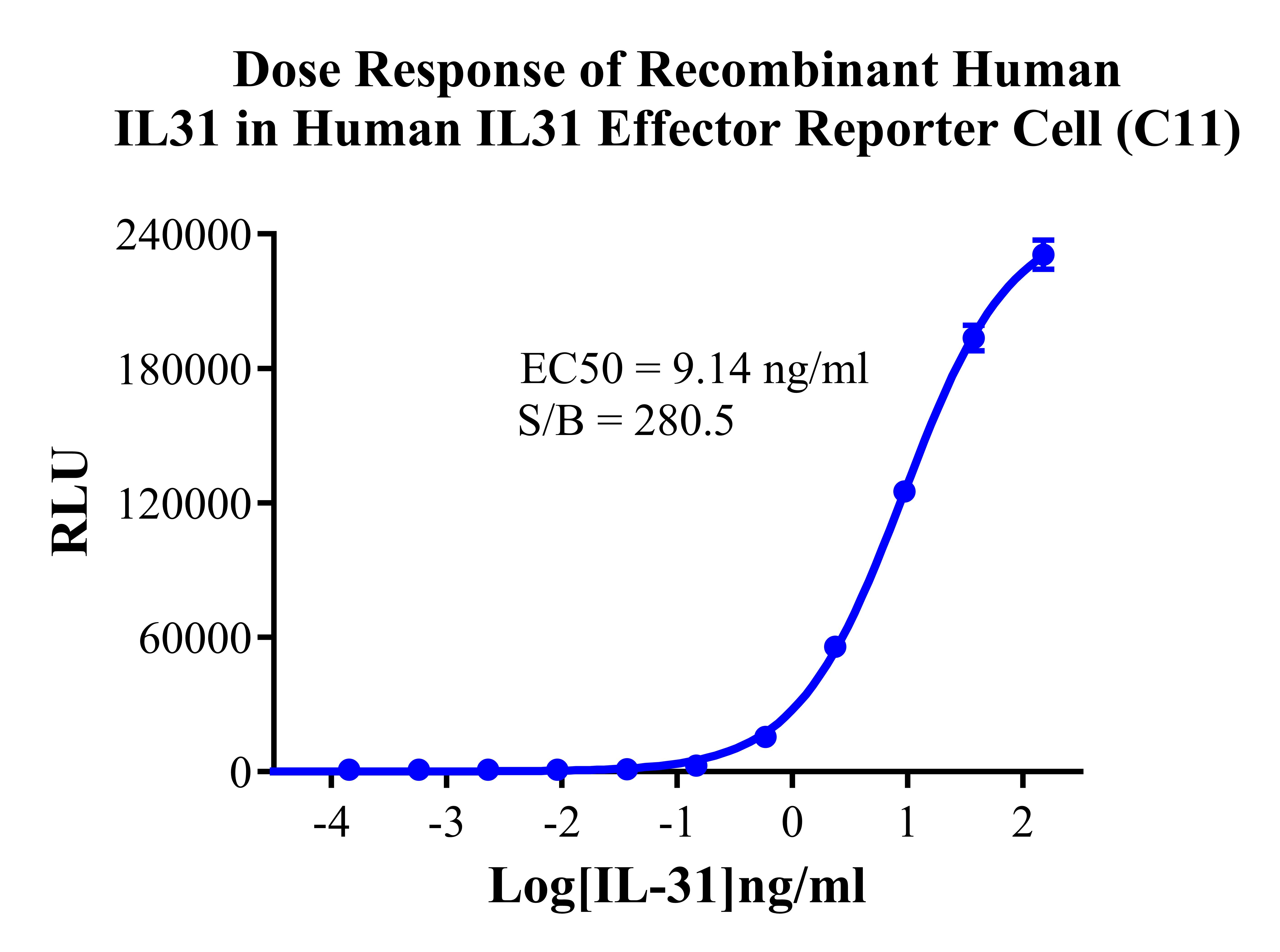 Figure 3. Dose Response of Recombinant Human IL31 in Human IL31 Effector Reporter Cell(C11).