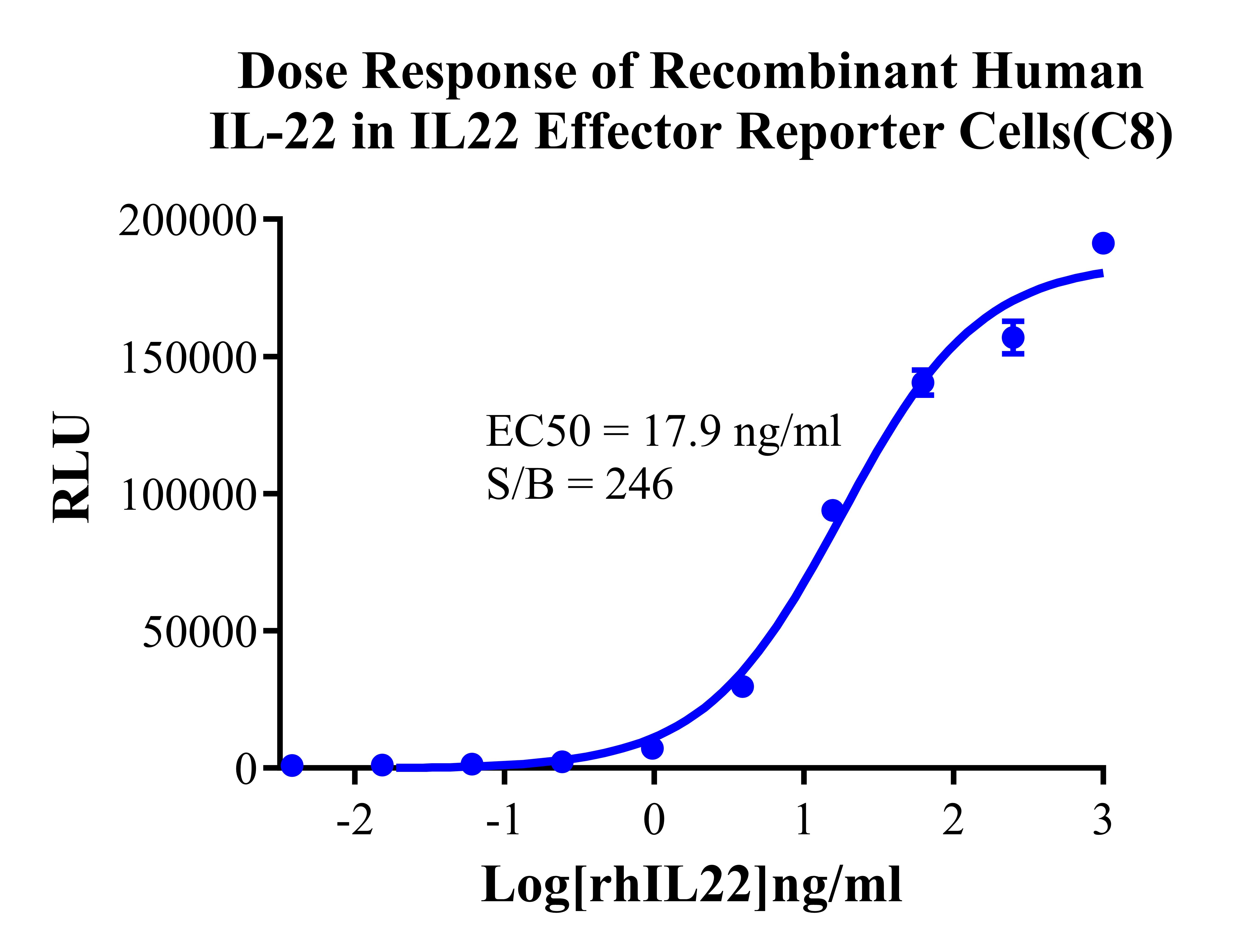 Figure 4.Dose Response of Recombinant Human IL-22 in IL22 Effector Reporter Cells(C8). |