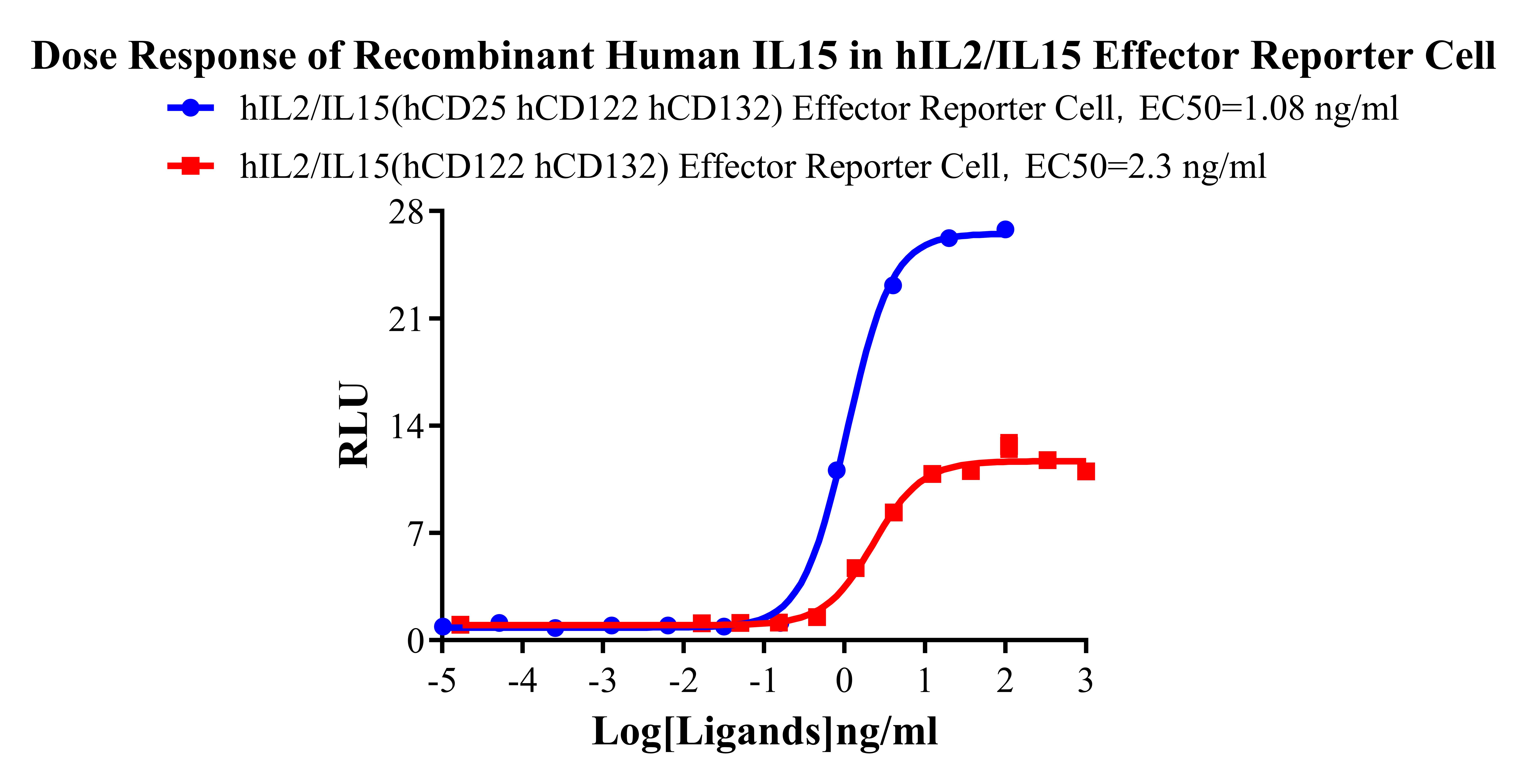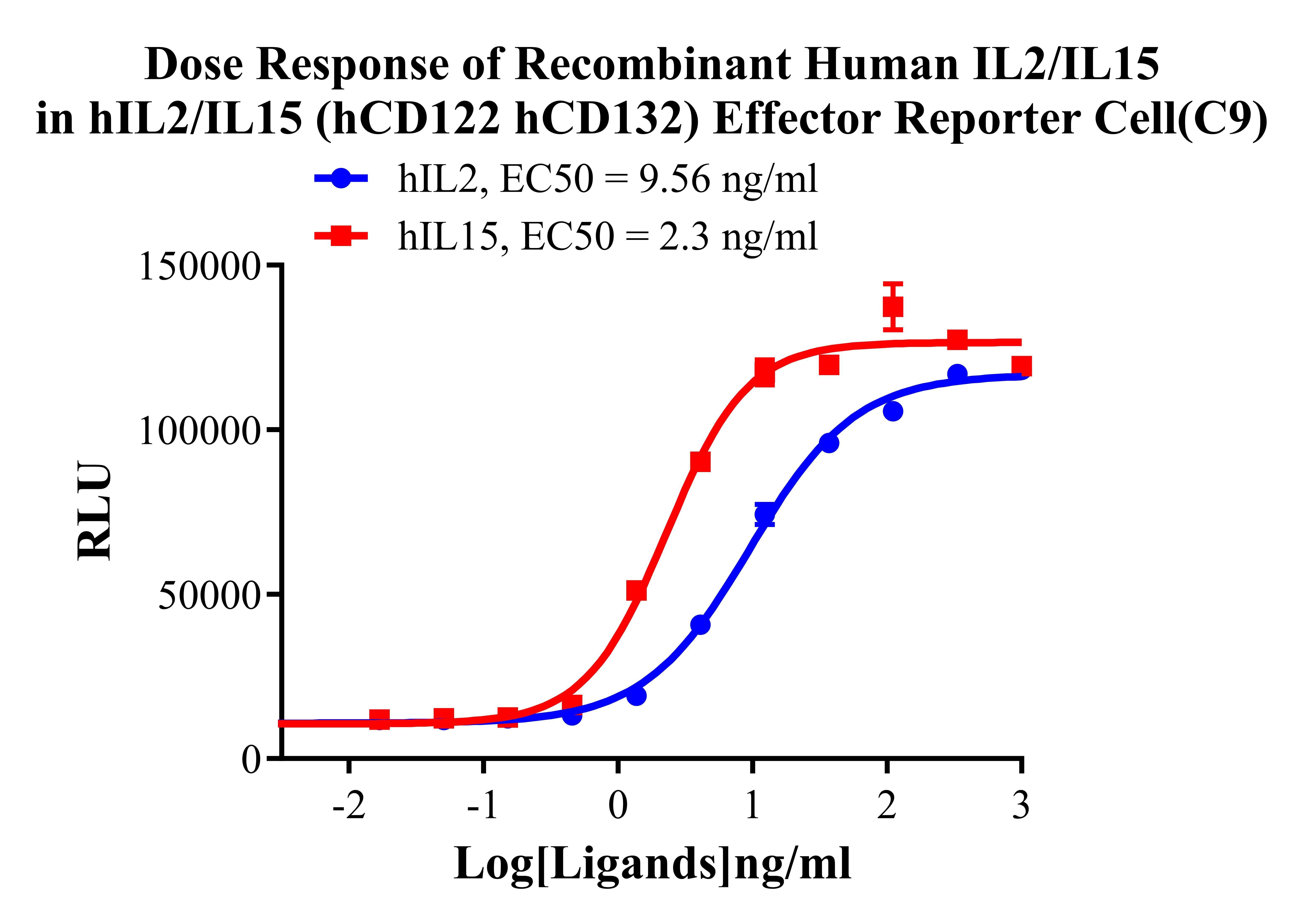 Figure 3. Dose Response of Recombinant Human IL2/IL15 in hlL2/IL15 Effector(hCD122/hCD132)  Effector Reporter Cell (C9).