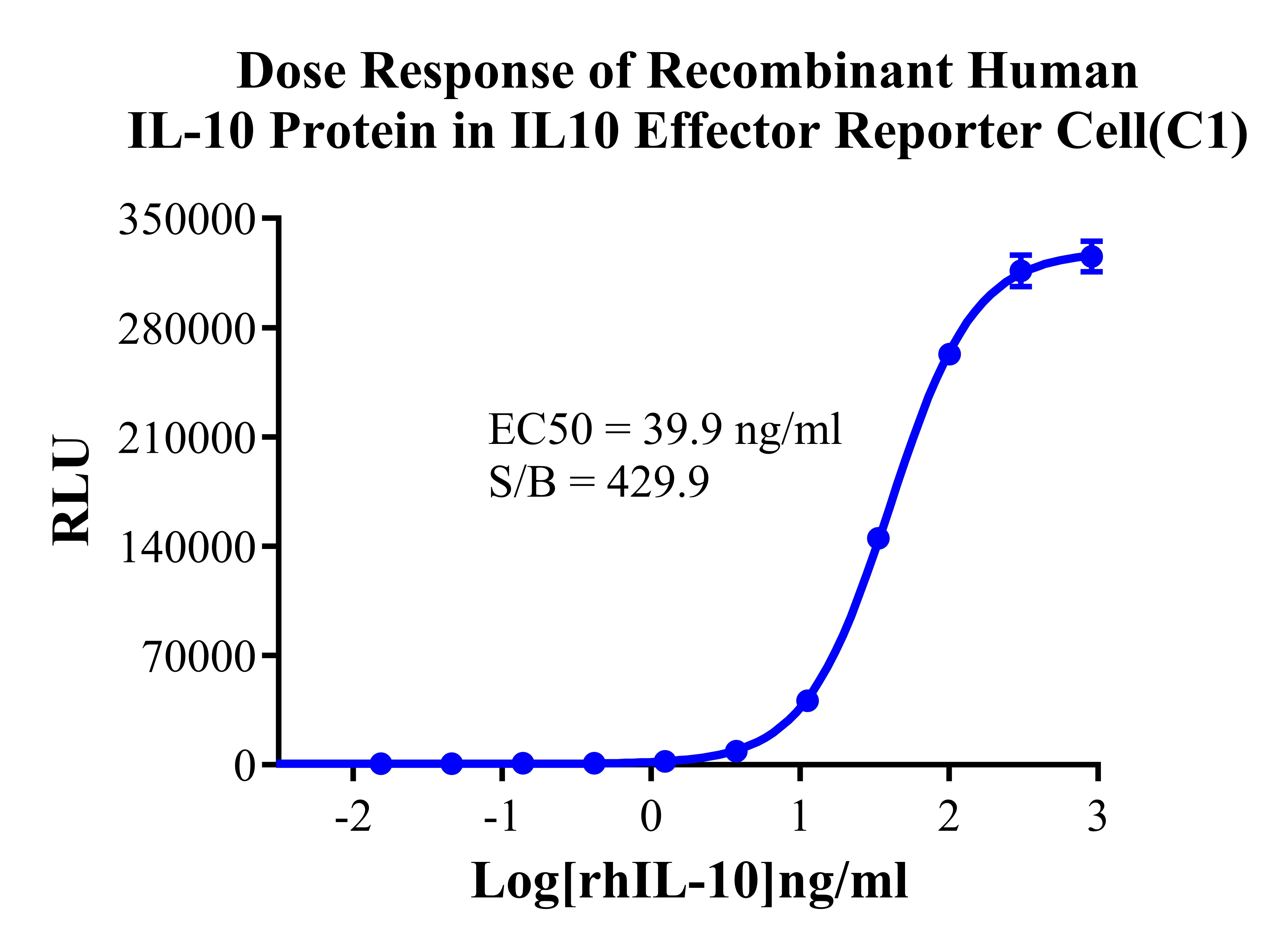 Figure 3.Dose Response of Recombinant Human IL-10 Protein in IL10 Effector Reporter Cell(C1). |