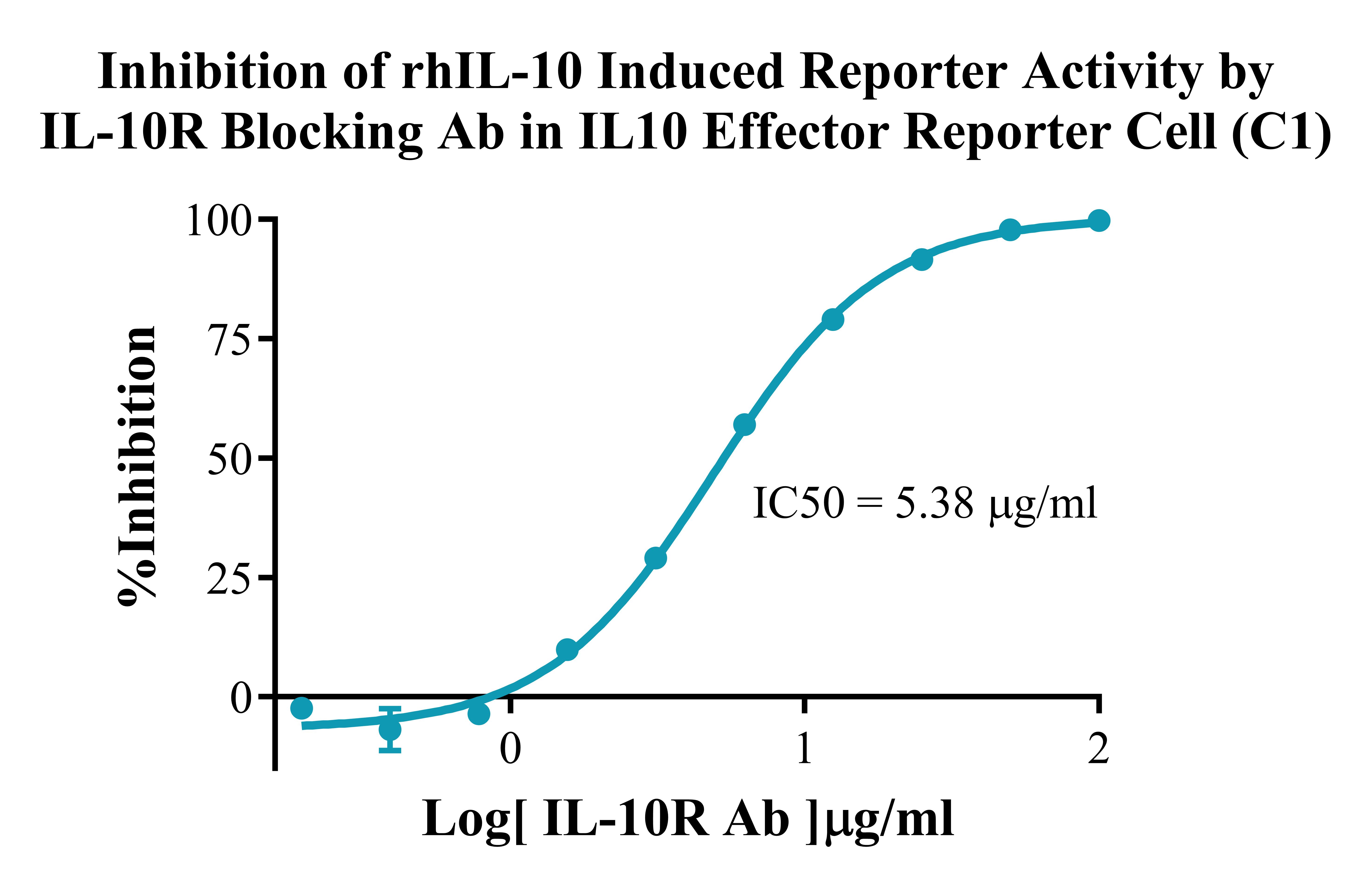 Figure 4.Inhibition of rhIL-10 Induced Reporter Activity by IL-10R Blocking Ab in IL 10 Effector Reporter Cell(C1). |
