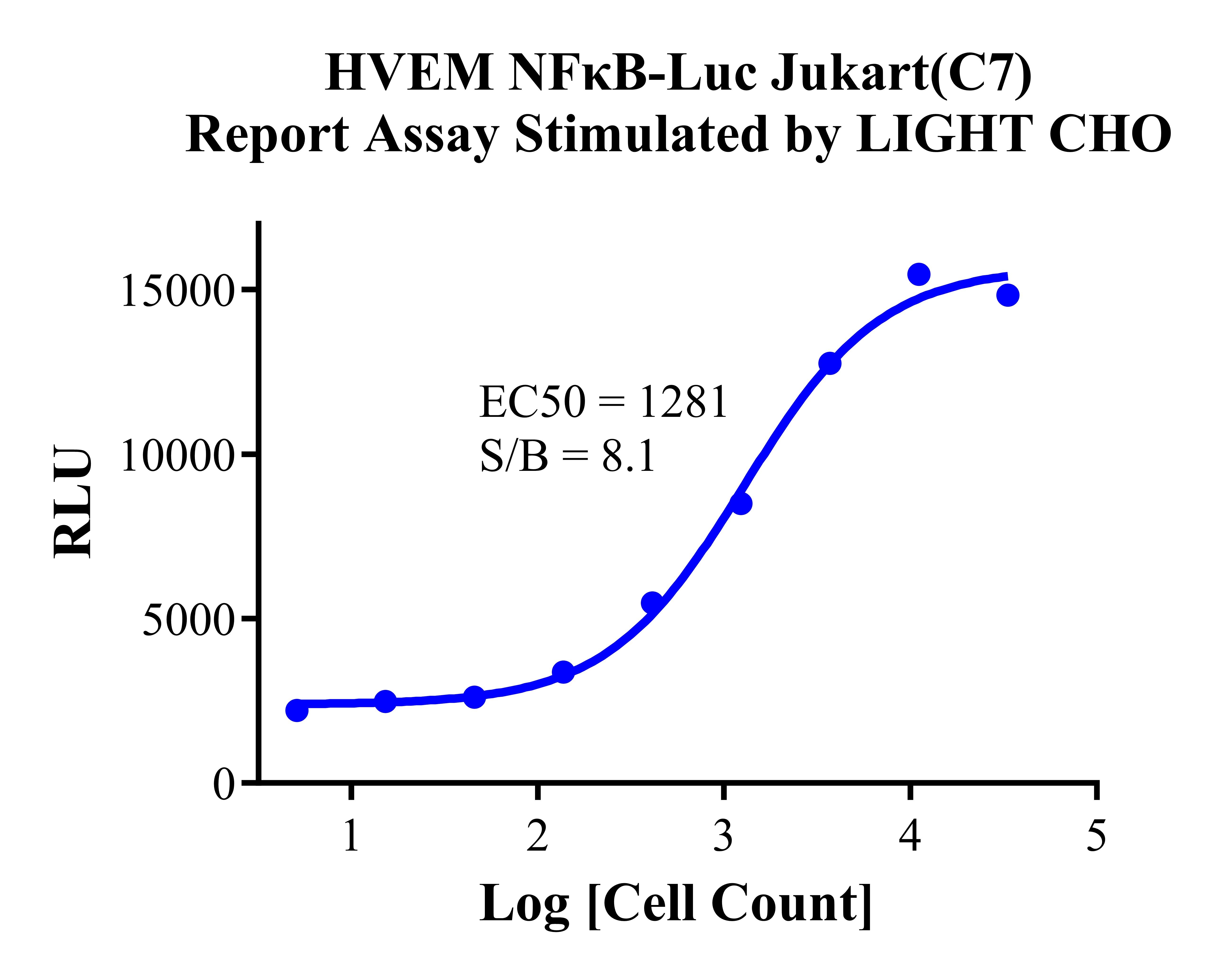 Figure 3. Detect Luciferase assay by Ultra Luciferase Detection Kit CBPH0001(we strongly suggest to purchase from Cobioer). HVEM NFκB-Luc Jurkat(C7) Report Assay Stimulated by LIGHT/CHO.