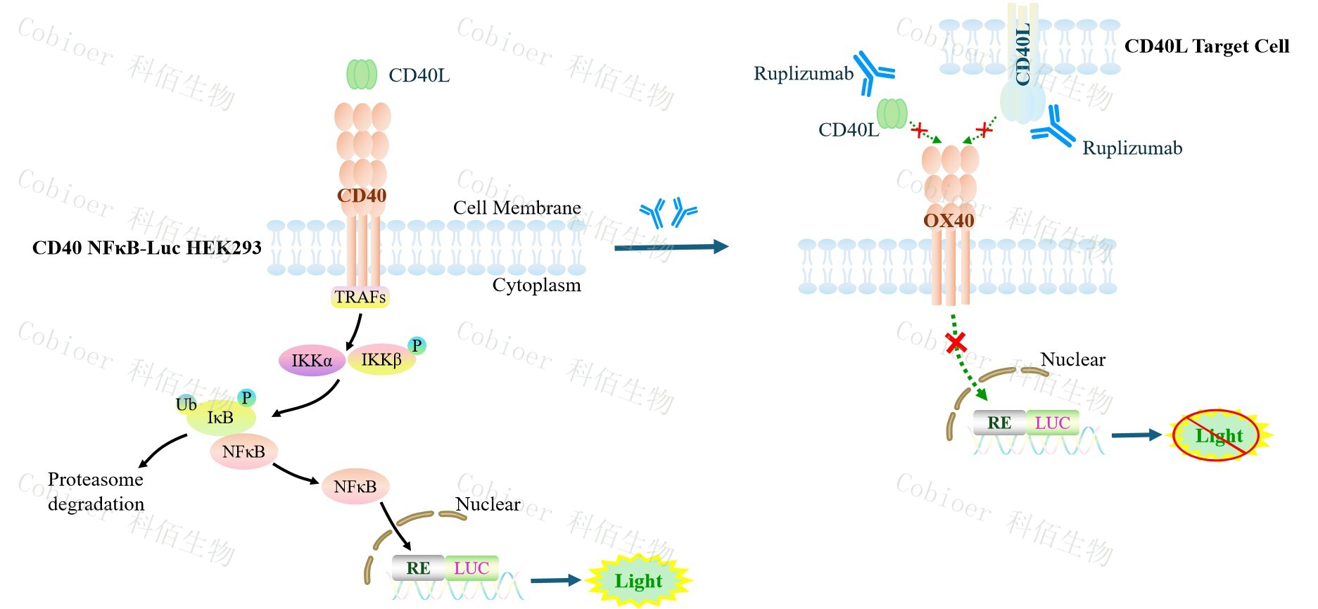 Figure 1. CD40 NFκB-Luc HEK293 細(xì)胞模型原理圖
