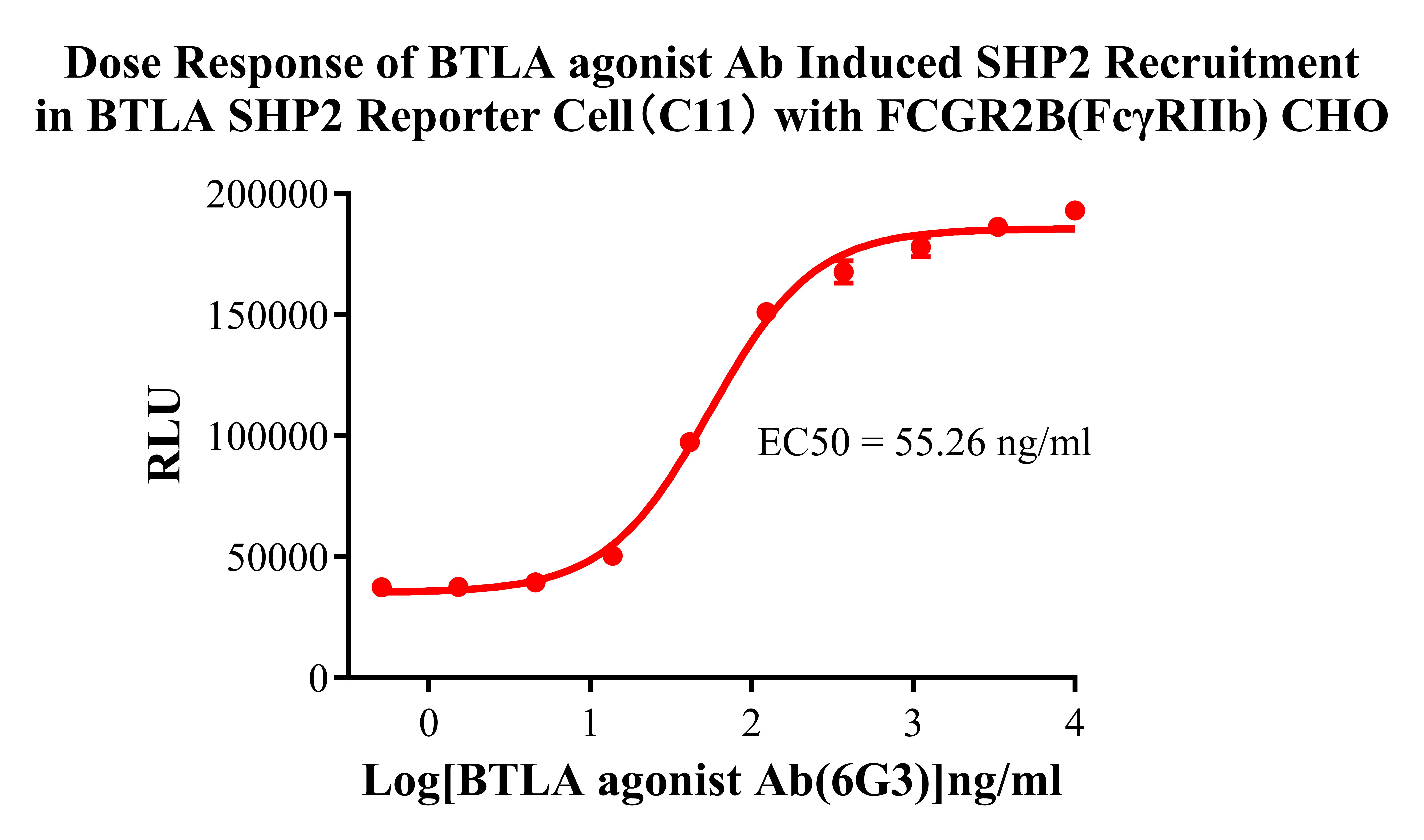 Figure 3. Dose Response of BTLA agonist Ab Induced SHP2 Recruitment in BTLA SHP2 Reporter Cell(C11) with FCGR2B(FcγRIIb) CHO.