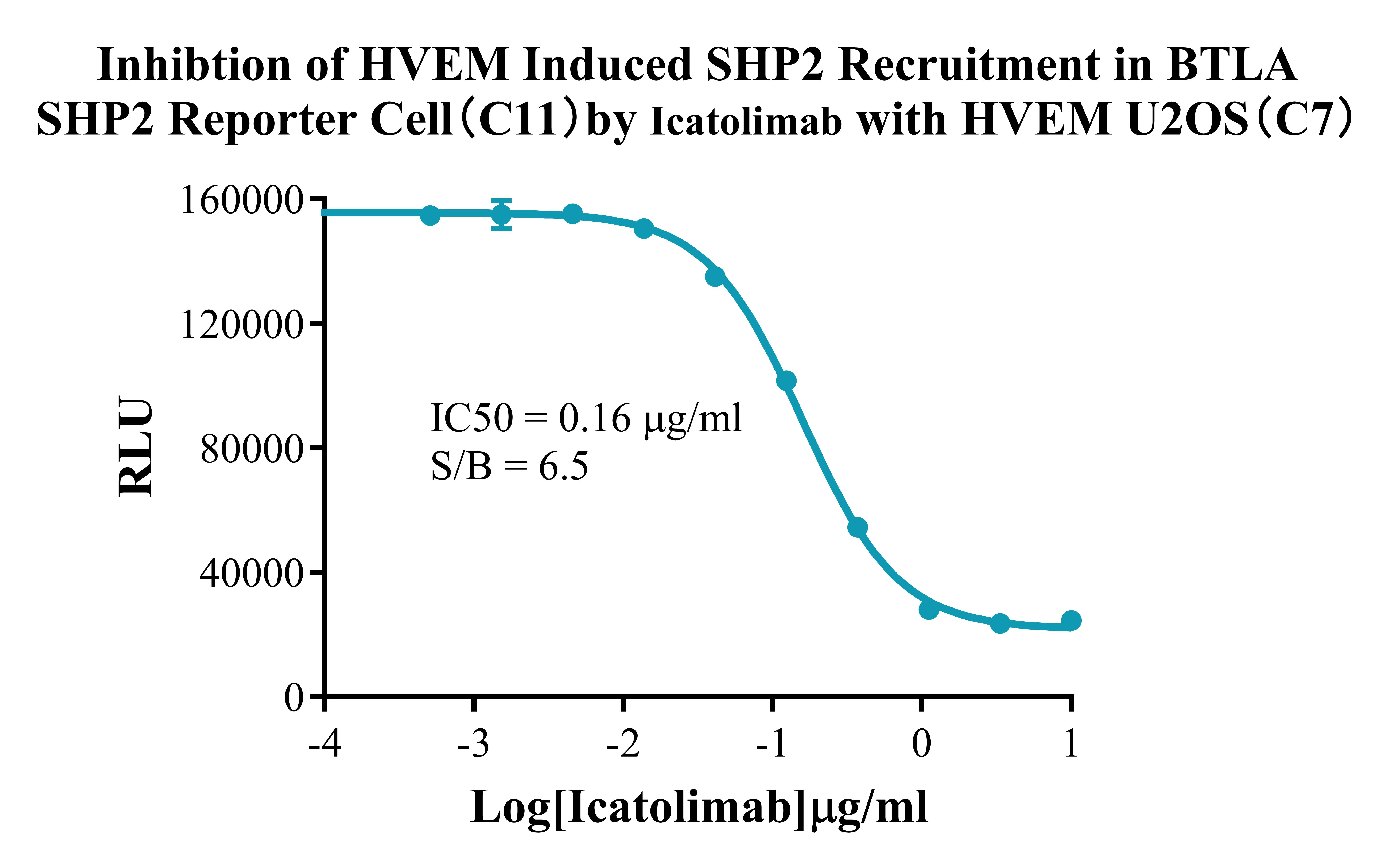 Figure 4. Inhibtion of HVEM Induced SHP2 Recruitment In BTLA SHP2 Reporter Cell(C11) By lcatolimab with HVEM U2OS (C7).