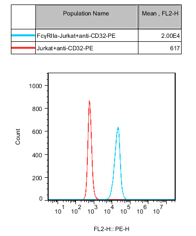 Figure 2.ADCP Bioassay Effector Cell FcγRIIa(R variant) -NFAT Jurkat 細(xì)胞流式驗(yàn)證 FcγRⅡa 的表達(dá)。 |