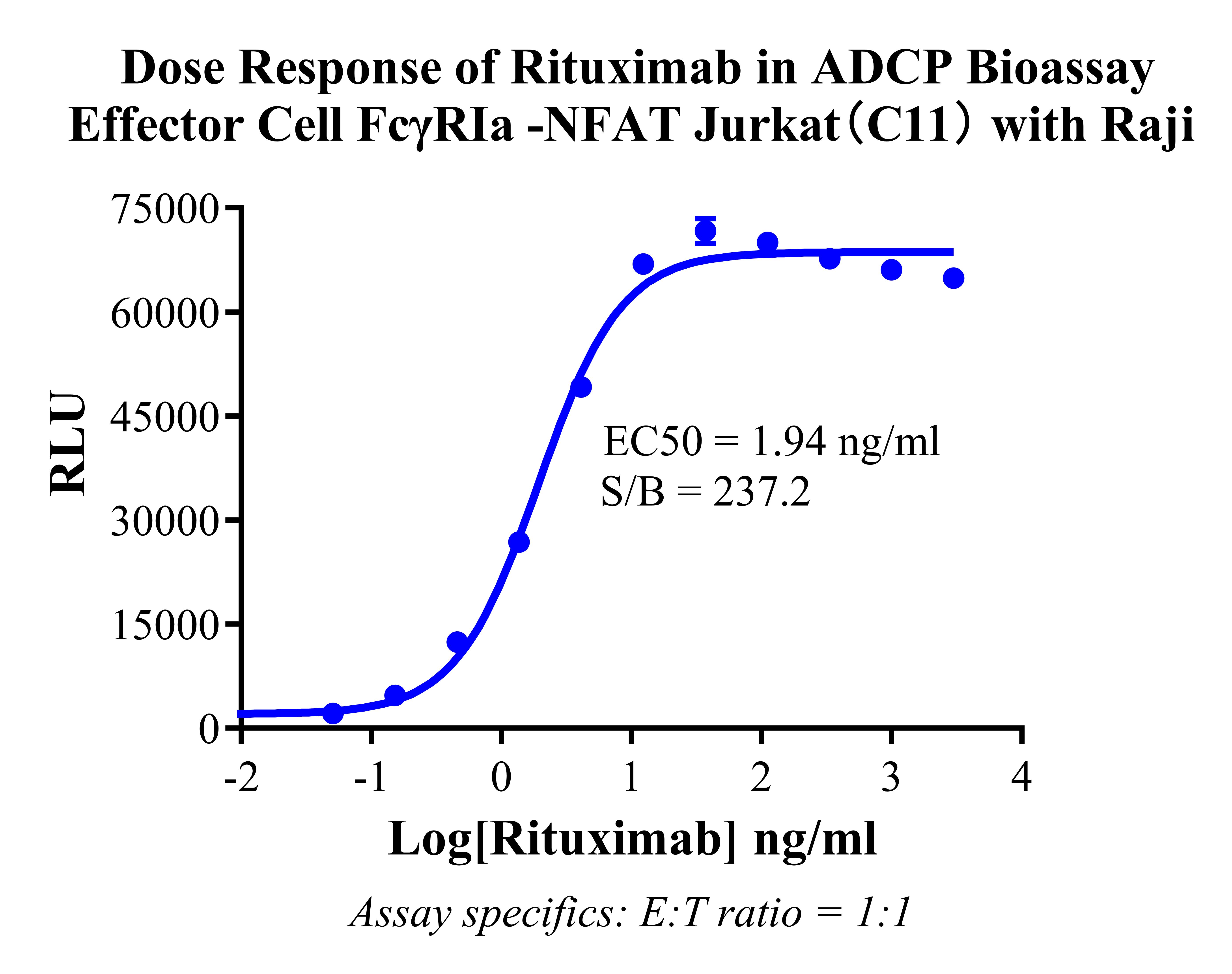 Figure 2. Dose response of Rituximab in ADCP Bioassay Effector Cell FcγRⅠa-NFAT Jurkat (C11) with Raji.