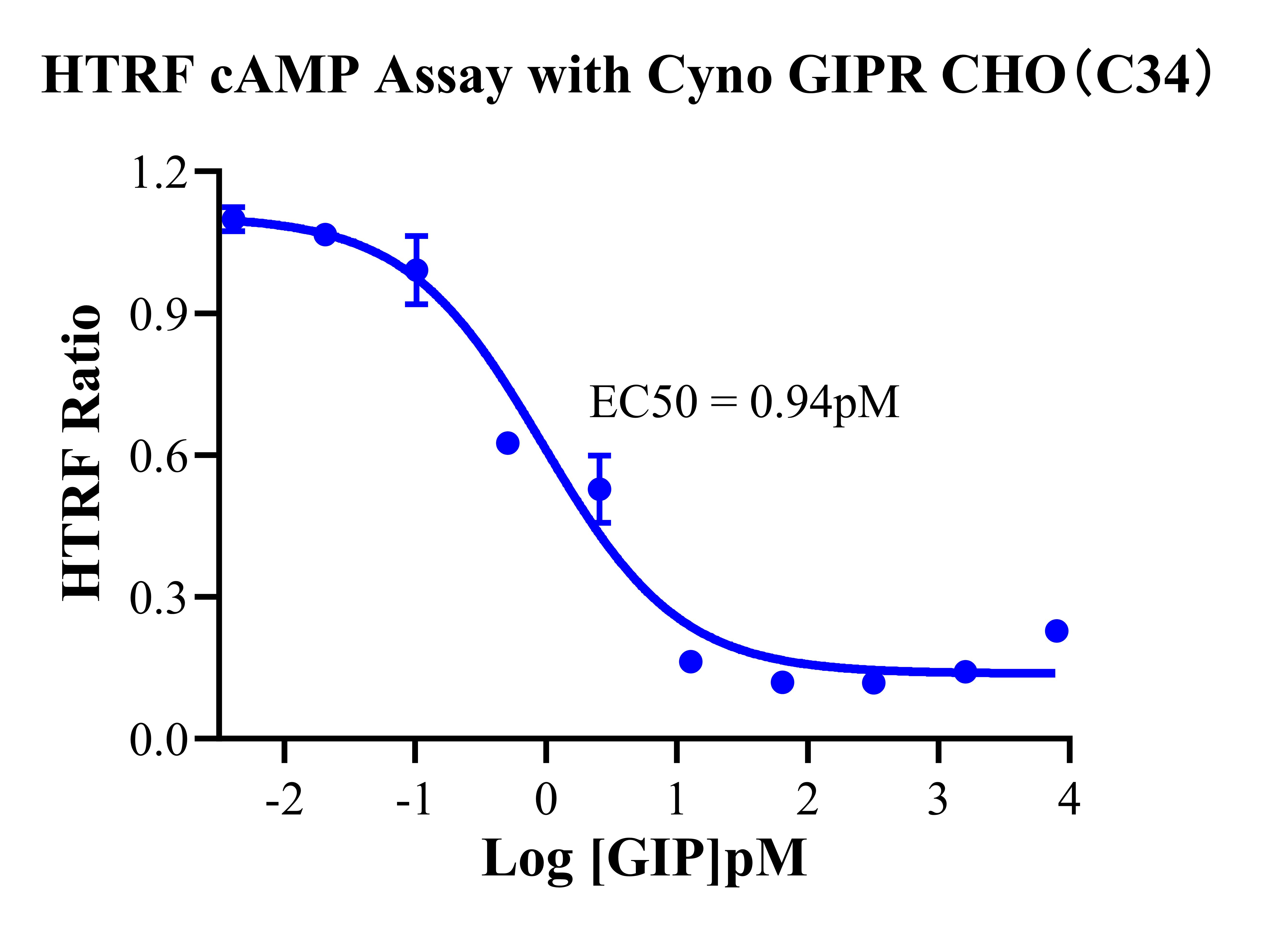 Figure 3. HTRF cAMP Assay with Cyno GIPR CHO(C34).
