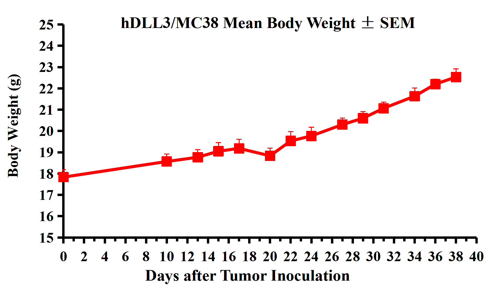 hDLL3/MC38 Mean Body Weight ± SEM.