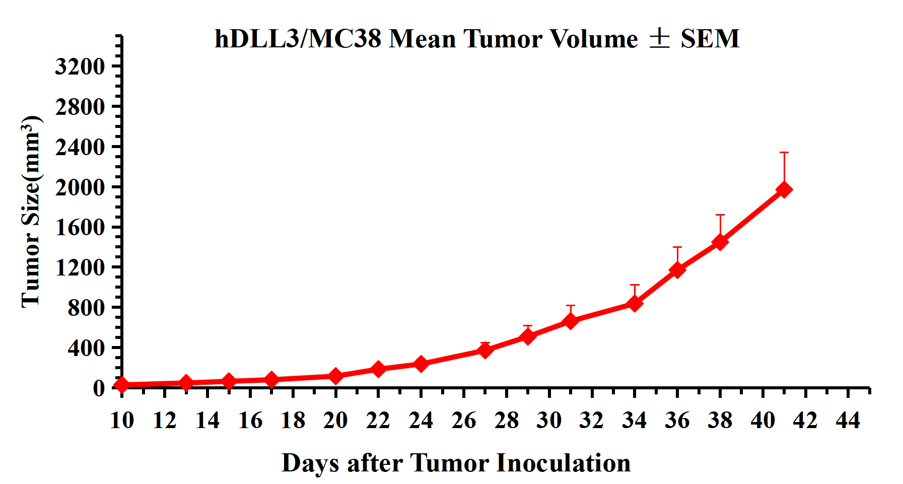 Figure 3. hDLL3/MC38 Mean Tumor Volume ± SEM .