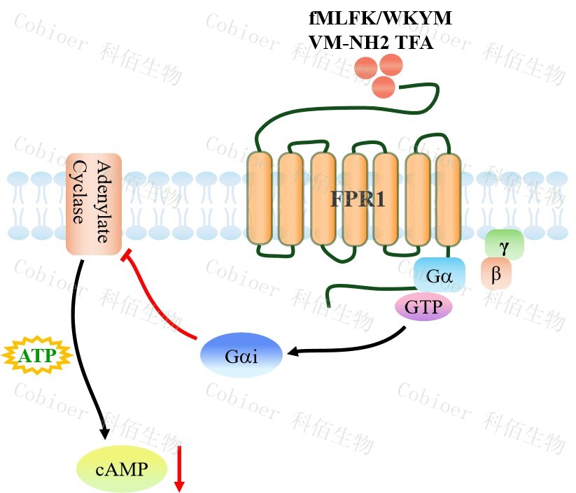 甲酰肽受體(FPR)屬于 G 蛋白偶聯(lián)受體(GPCR)家族,是趨化受體和模式識別受 體(PRR),可識別細(xì)菌和線粒體衍生的甲酰化肽。FPRs 家族包括三個成員(FPR1、 FPR2 和 FPR3),它們在多種組織和細(xì)胞類型中廣泛表達(dá),調(diào)節(jié)多種生物功能,如血管生 成、細(xì)胞增殖和防止細(xì)胞死亡。 |