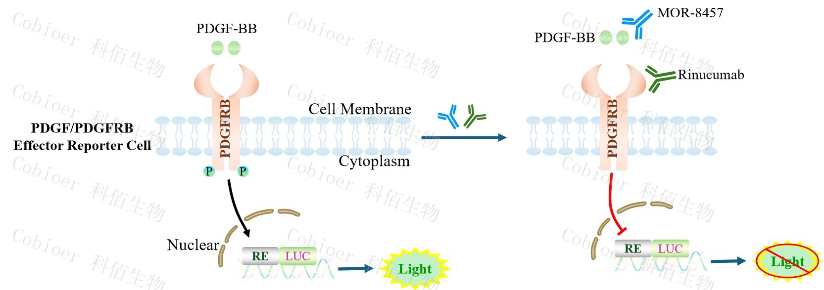 Figure 1. PDGF/PDGFRB Effector Reporter Cell 細胞模型原理圖