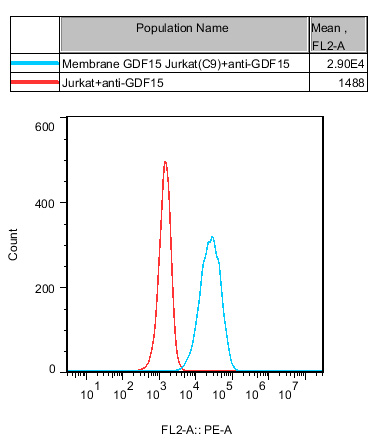 Membrane GDF15 Jurkat 細胞,在 Jurkat 細胞的基礎(chǔ)上,穩(wěn)定表達人 GDF15。 |