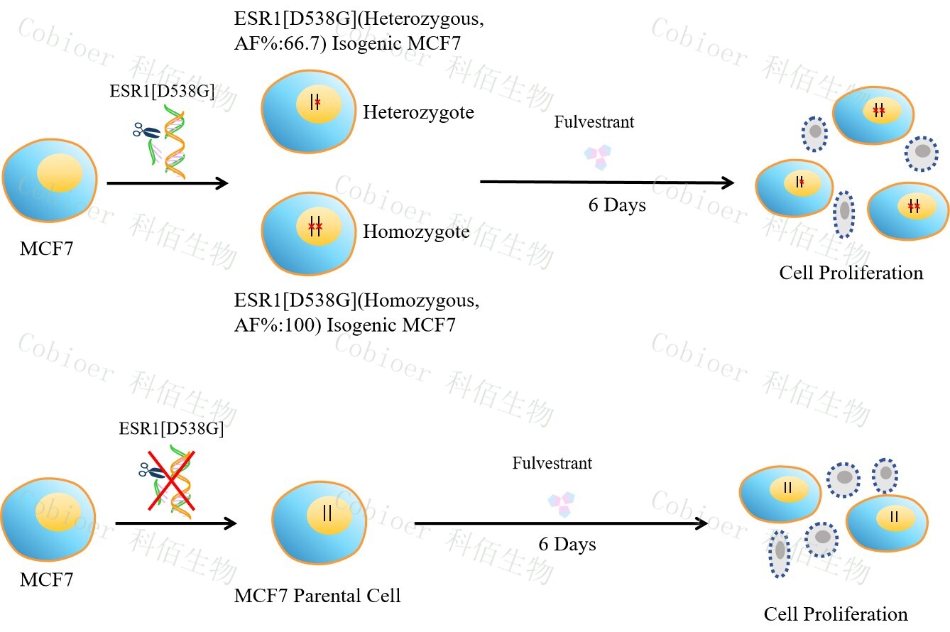 Figure 1. ESR1[D538G](Homozygous,AF%:100) Isogenic MCF7 原理示意圖