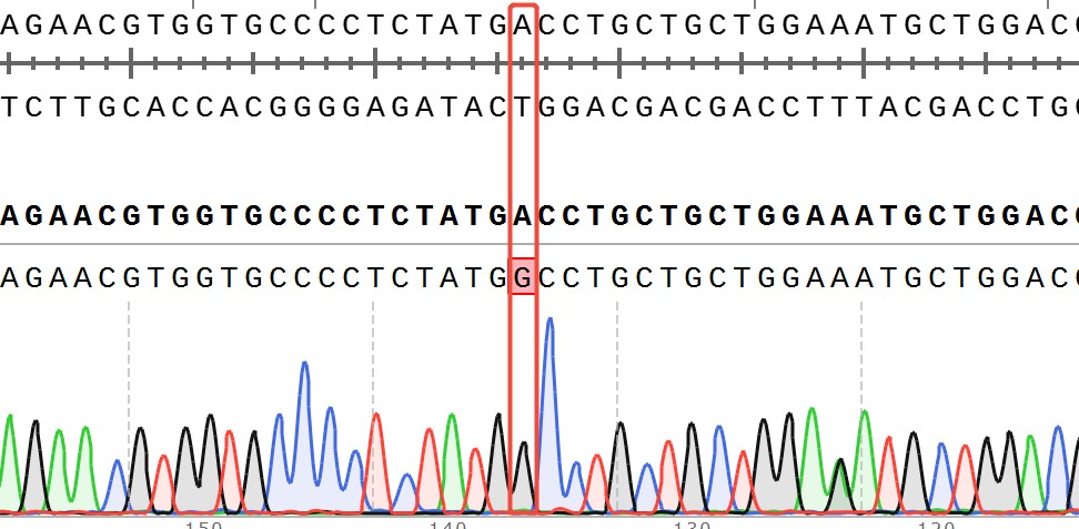 Figure 2. Sanger of ESR1[D538G](Homozygous,AF%:100) Isogenic MCF7.