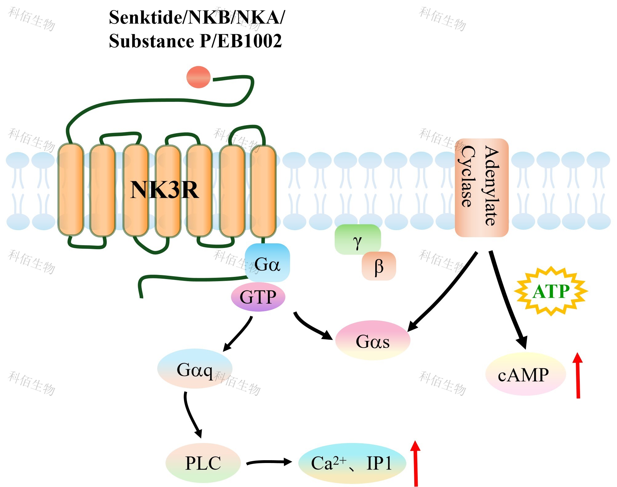 速激肽(Tachykinin)是在整個神經和免疫系統(tǒng)中表達的神經肽,作為興奮性神經遞質, 它們在調節(jié)各種生理功能中發(fā)揮重要的作用。在不同的速激肽中,P 物質(SP)、神經激 肽 A(NKA) 和 NKB 已得到充分研究。這些肽可以通過三種不同的 GPCR、神經激肽 1 受體(NK1R)、神經激肽 2 受體(NK2R) 和 NK3R 發(fā)揮作用。作為具有不同親和力的 完全激動劑。 NK3R(Neurokinin 3 Receptor),又稱 TACR3,是速激肽受體家族的重要成員,屬于 GPCR 超家族。其內源性配體為神經激肽 B(Neurokinin B, NKB),通過激活下游信號通 路參與生殖調控、神經內分泌調節(jié)及多種疾病進程。近年來,NK3R 成為治療更年期癥狀、 神經精神疾病及癌癥的熱門靶點。 |