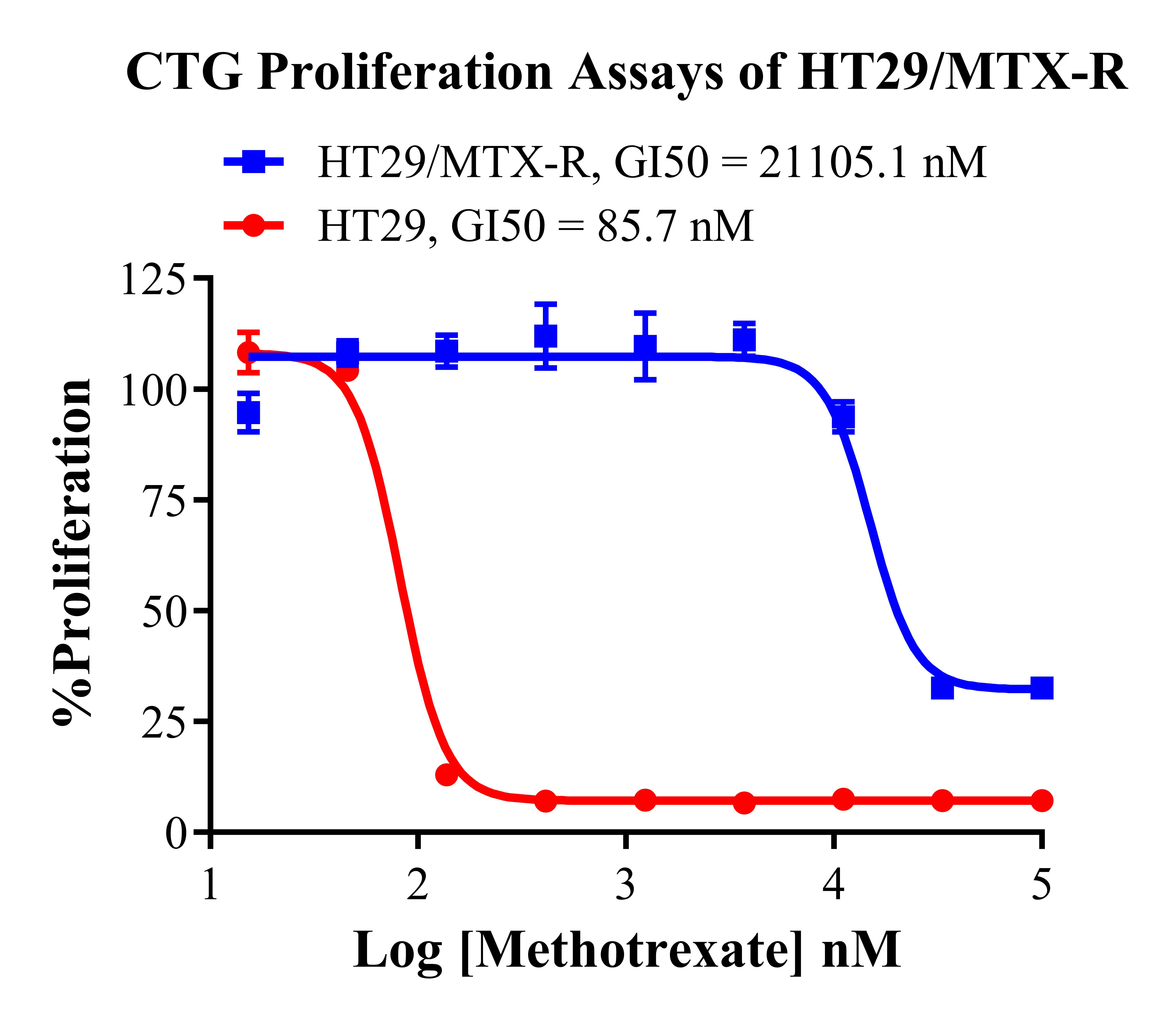 Figure 1. CTG Proliferation Assays of HT29/MTX-R.
