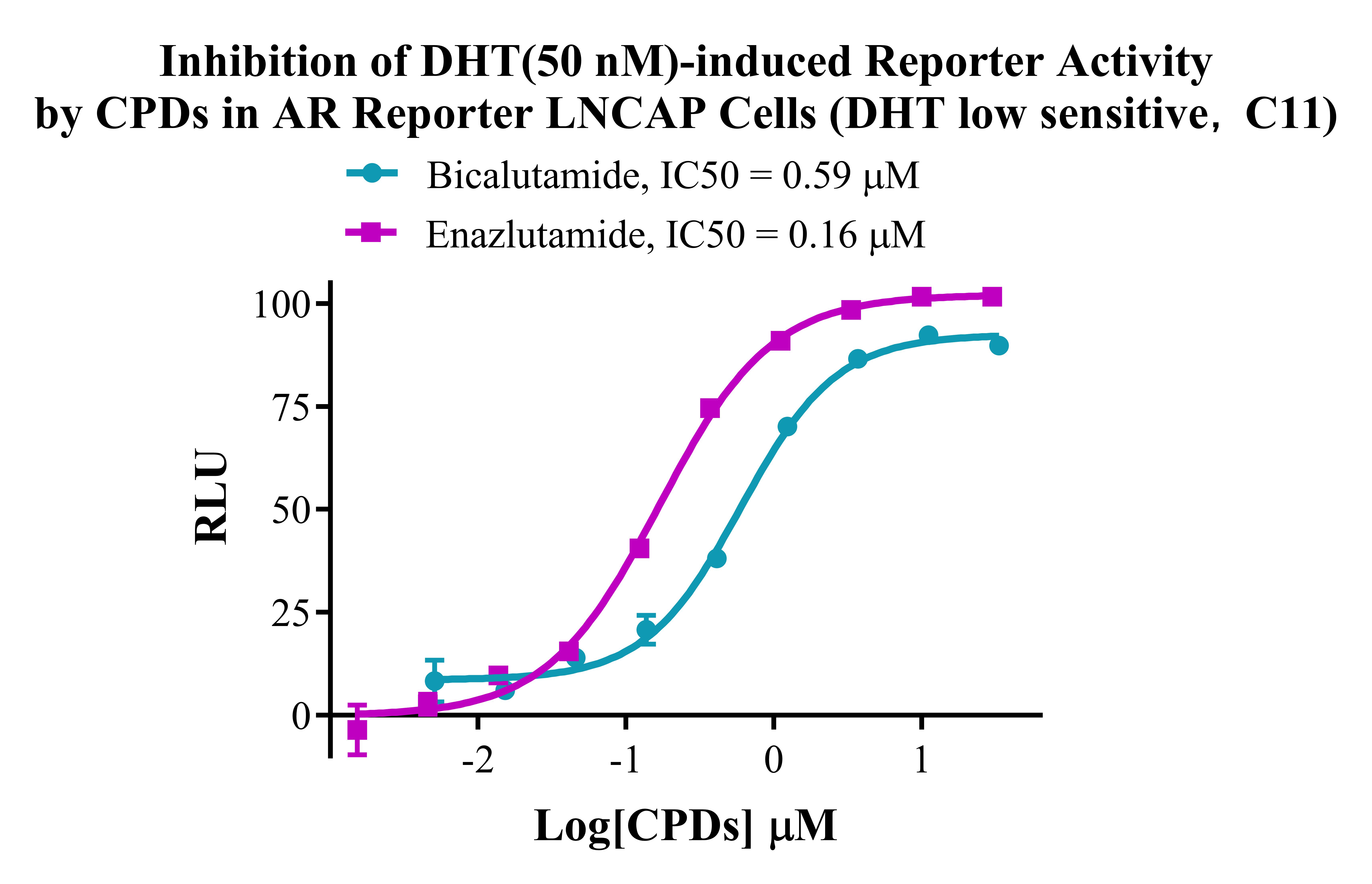 Figure 3. Inhibition of DHT(50nM)-induced Reporter Activity by CPDs in AR Reporter LNCAP Cell(DHT low sensitive,C11).