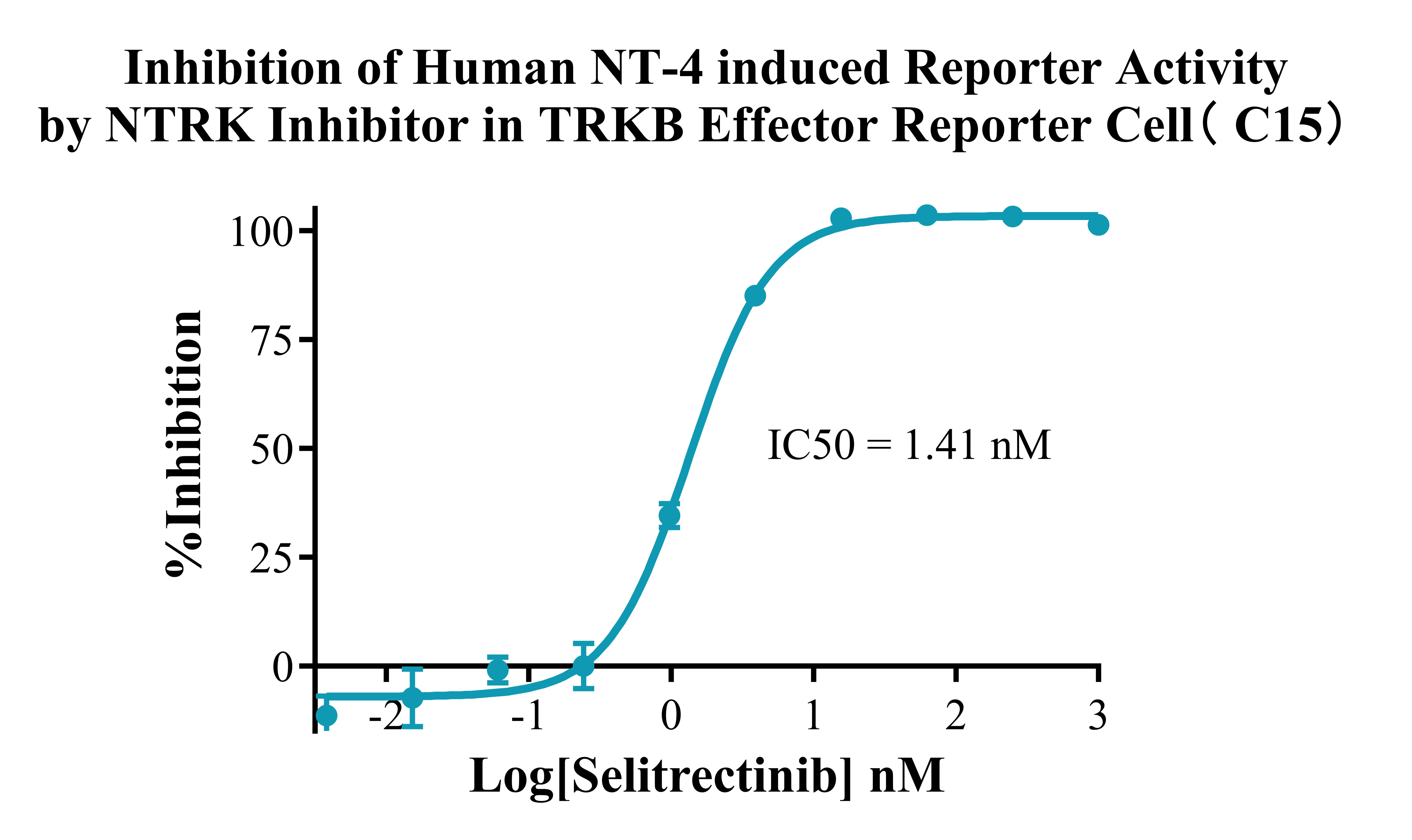 Figure 5. Inhibition of Human NT-4 induced Reporter Activity by NTRK Inhibitor in TRKB Effector Reporter Cell( C15).