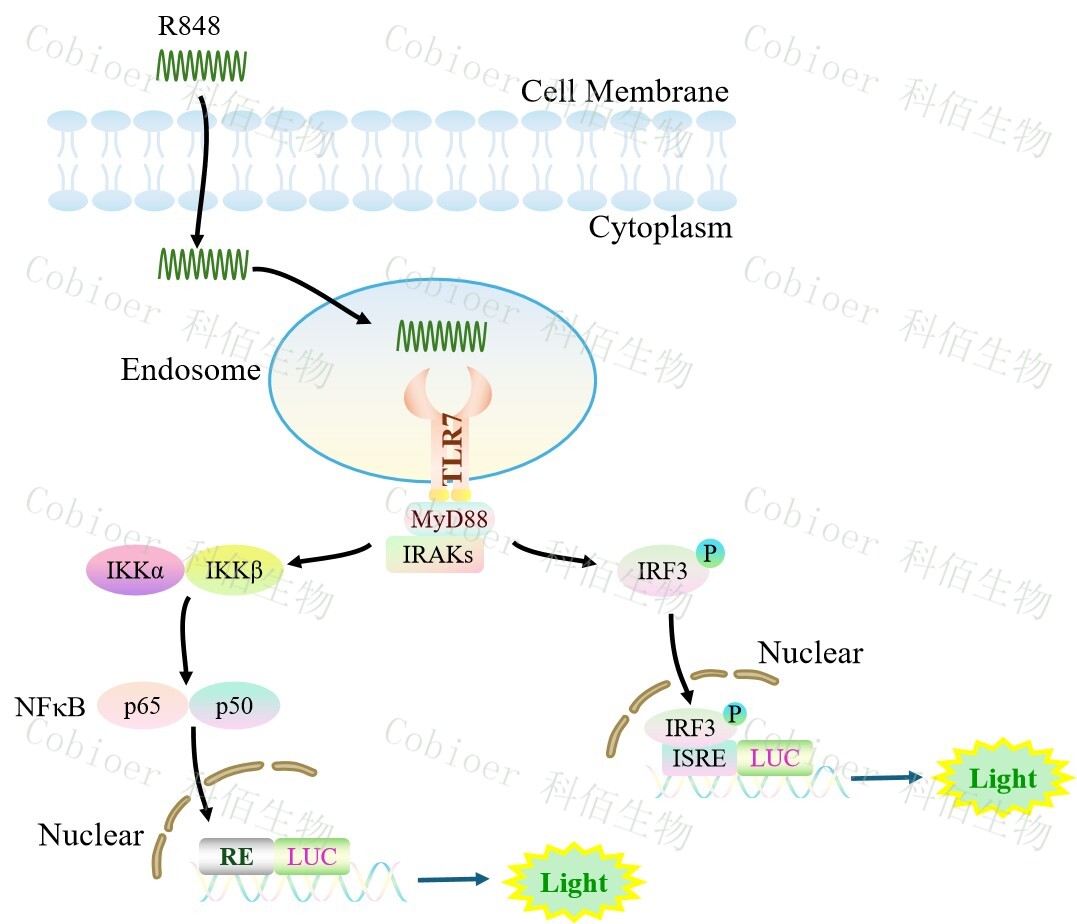TLR7 NFκB&ISRE Dual Reporter Cell 細(xì)胞模型原理圖