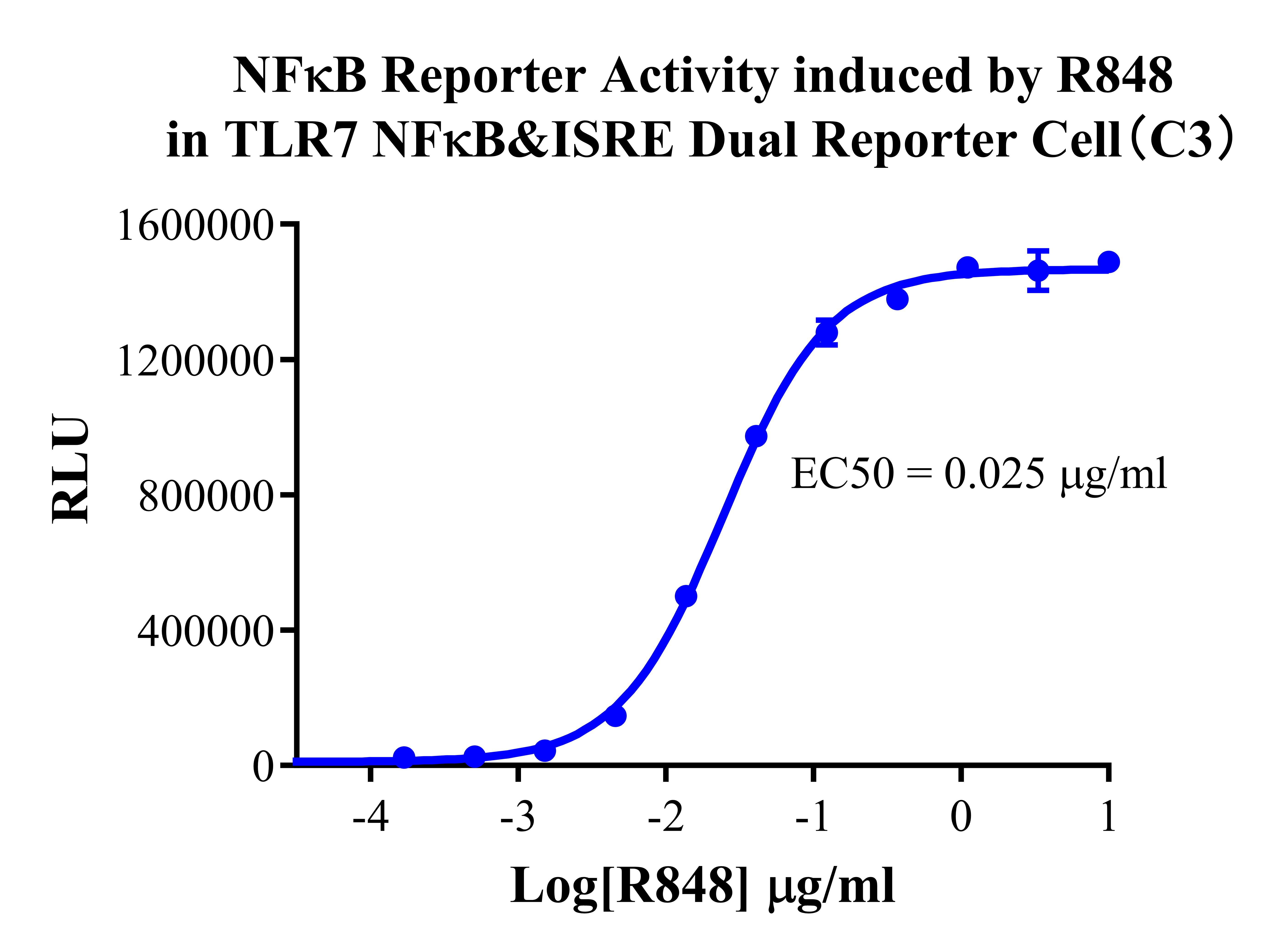 Figure 2.NFκB Reporter Activity induced by R848 in TLR7 NFκB&ISRE Dual Reporter Cell(C3).