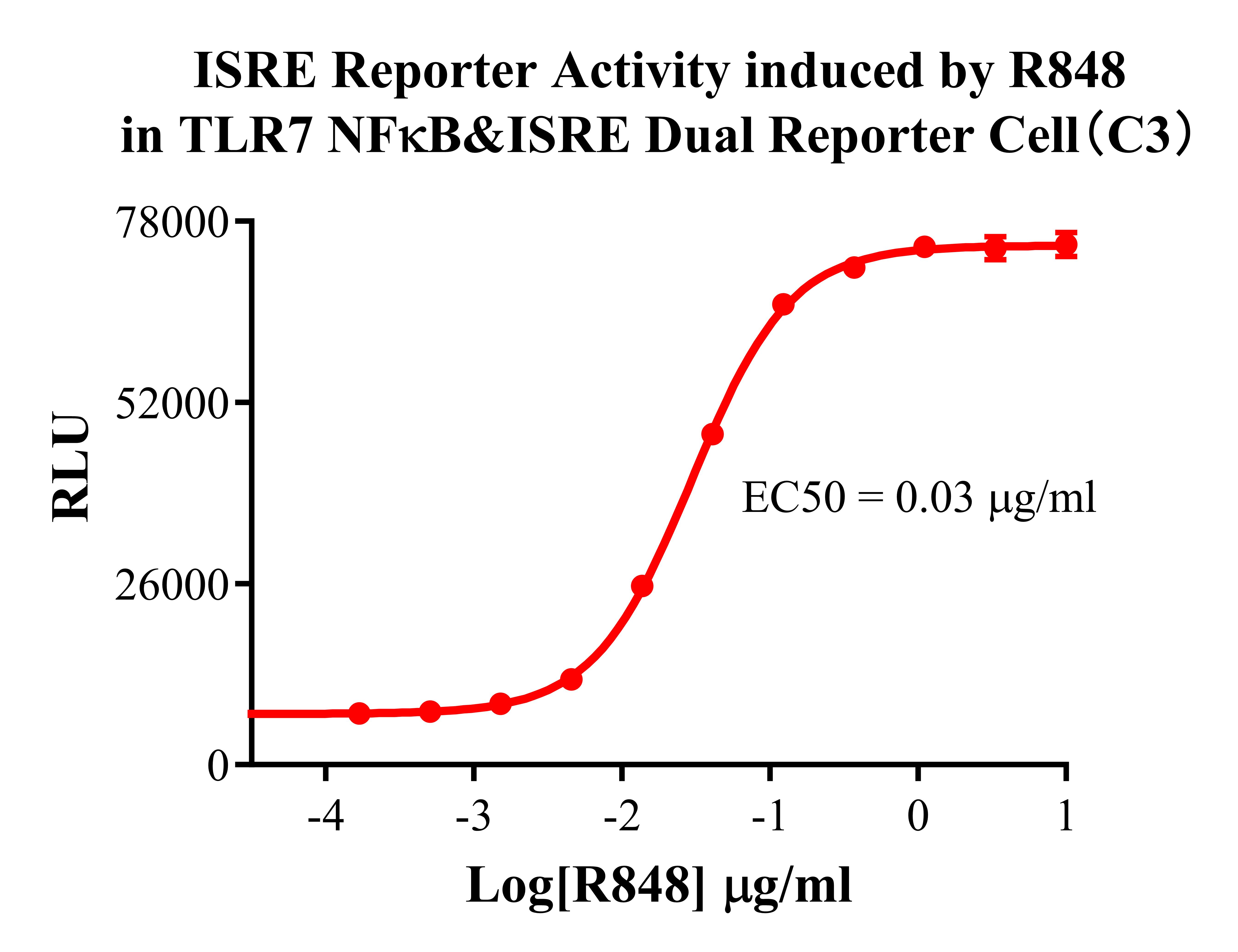 Figure 3. ISRE Reporter Activity induced by R848 in TLR7 NFκB&ISRE Dual Reporter Cell(C3).