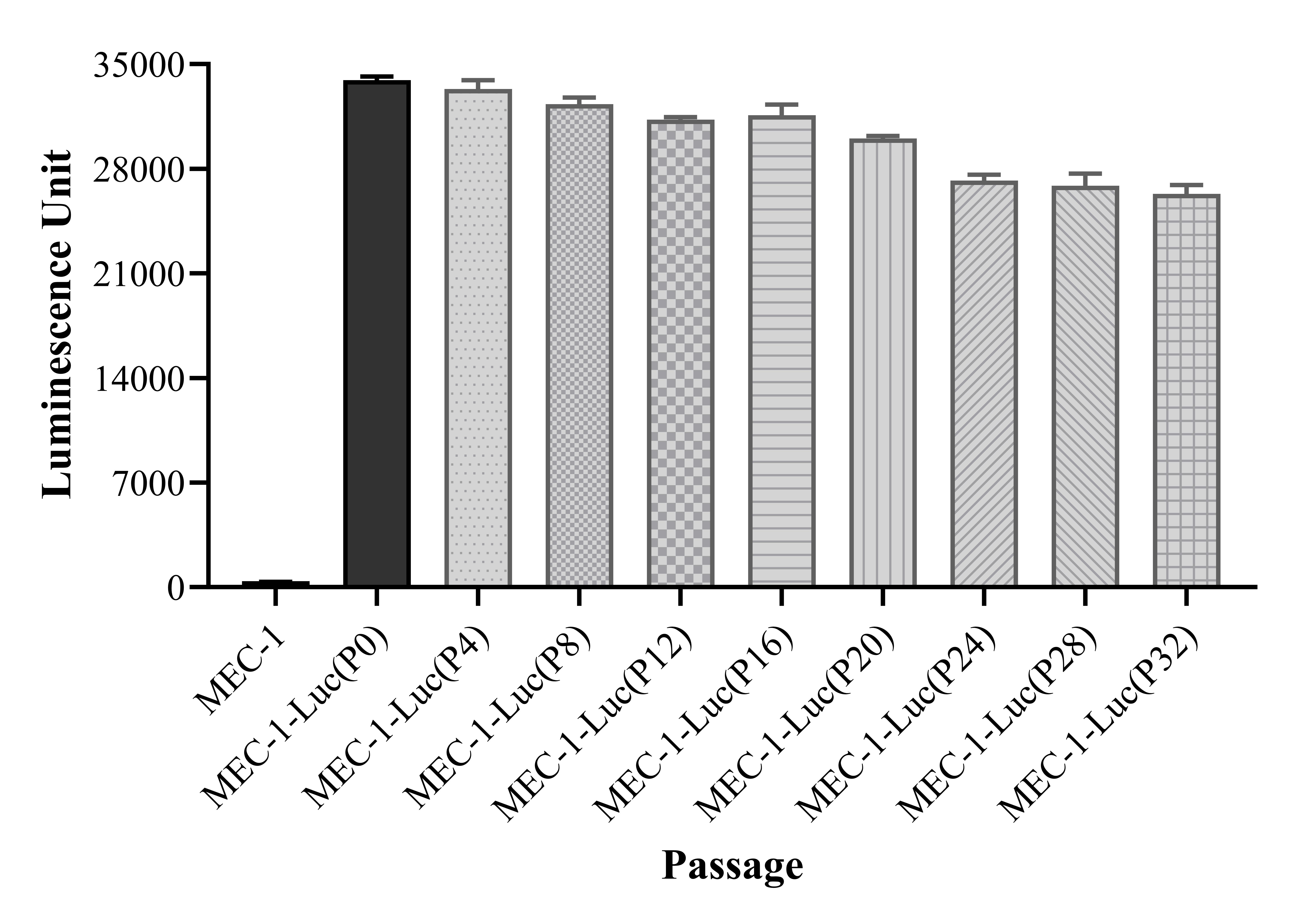 Figure 1. Stablity test results. MEC-1-Luc showed at least 32 passage stability with similar luminescence unit.