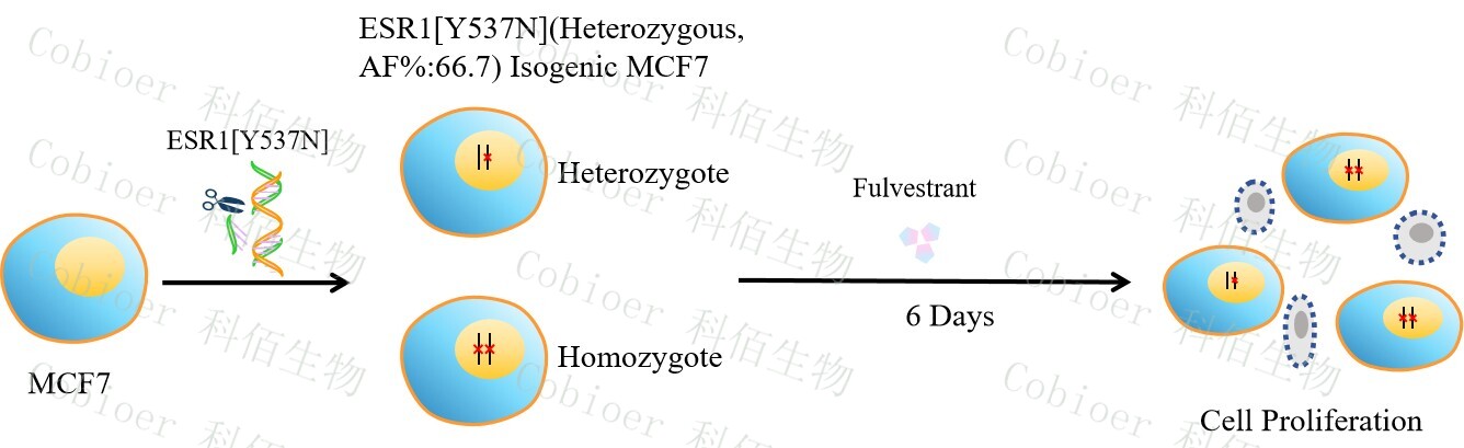 Figure 1. ESR1[Y537N](Heterozygous,AF%66.7) Isogenic MCF7 原理示意圖