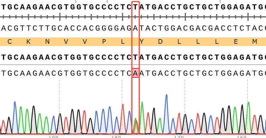 Figure 2. Sanger of ESR1[Y537N](Heterozygous,AF%:66.7)Isogenic MCF7