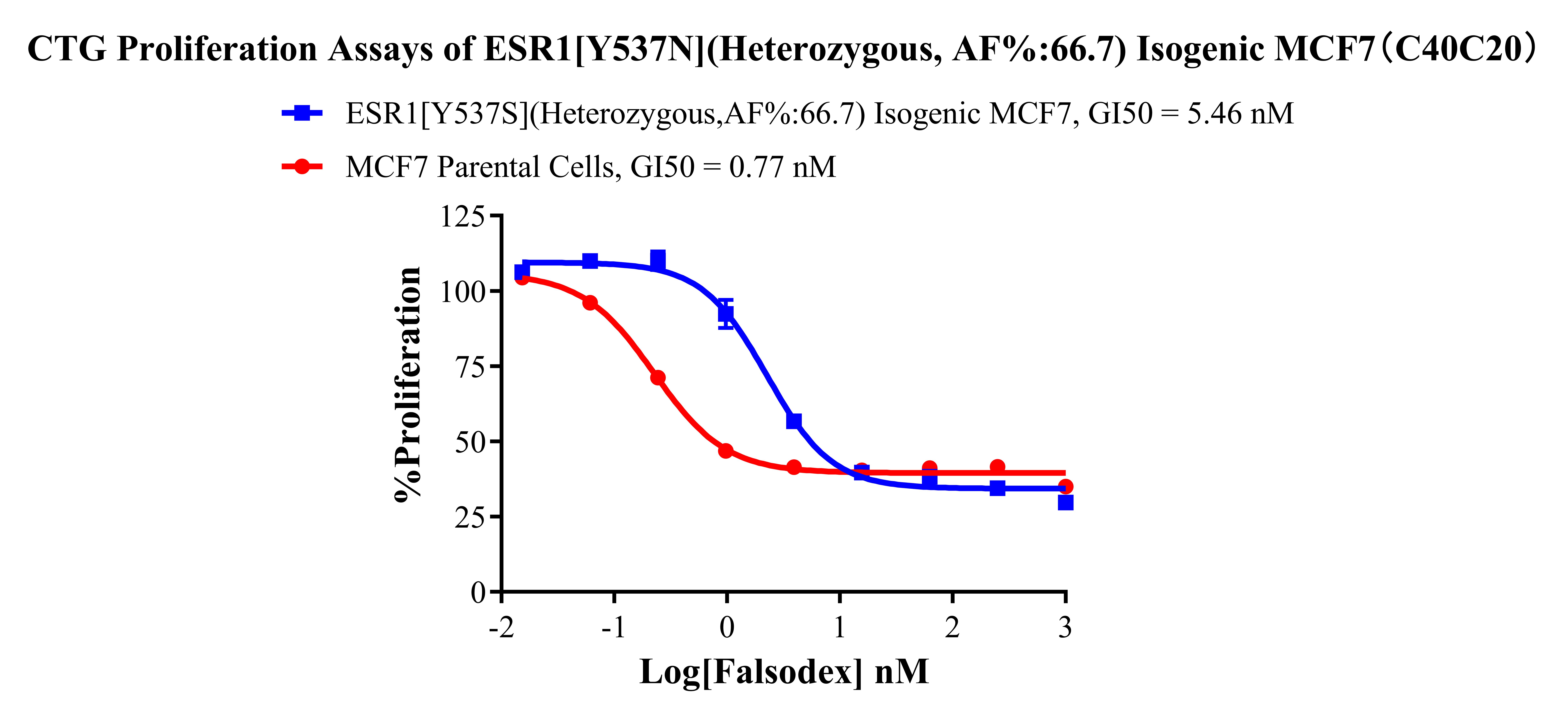 Figure 4. CTG Proliferation Assays of ESR1 [Y537N](Heterozygous, AF%:66.7) 1sogenic MCF7(C40C20).