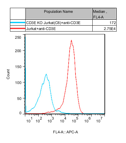 | CD3E KO Jurkat 細(xì)胞,在 Jurkat 細(xì)胞上敲除 CD3E。 | |