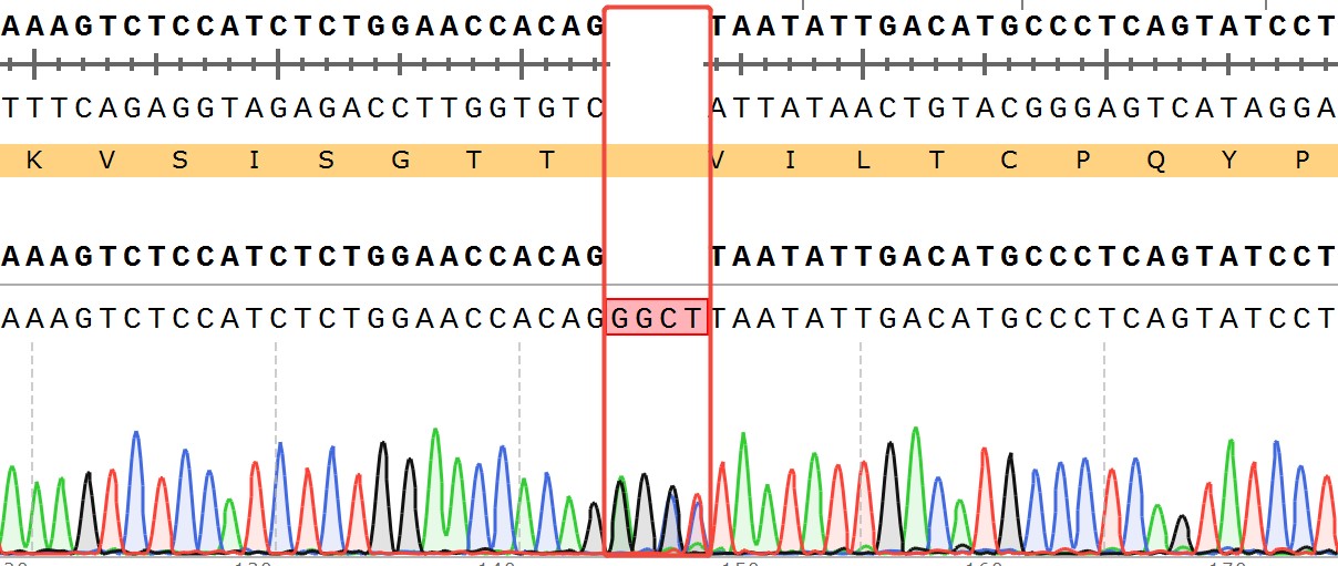 ![]() Figure 1. CD3E KO Jurkat 細(xì)胞測(cè)序驗(yàn)證結(jié)果[CD3E(NM_000733.4):c.133_134insGGCT/CD3E:p.V45Gfs*13] ![]() Figure 2. CD3E KO Jurkat 細(xì)胞,在 Jurkat 細(xì)胞上敲除 CD3E。