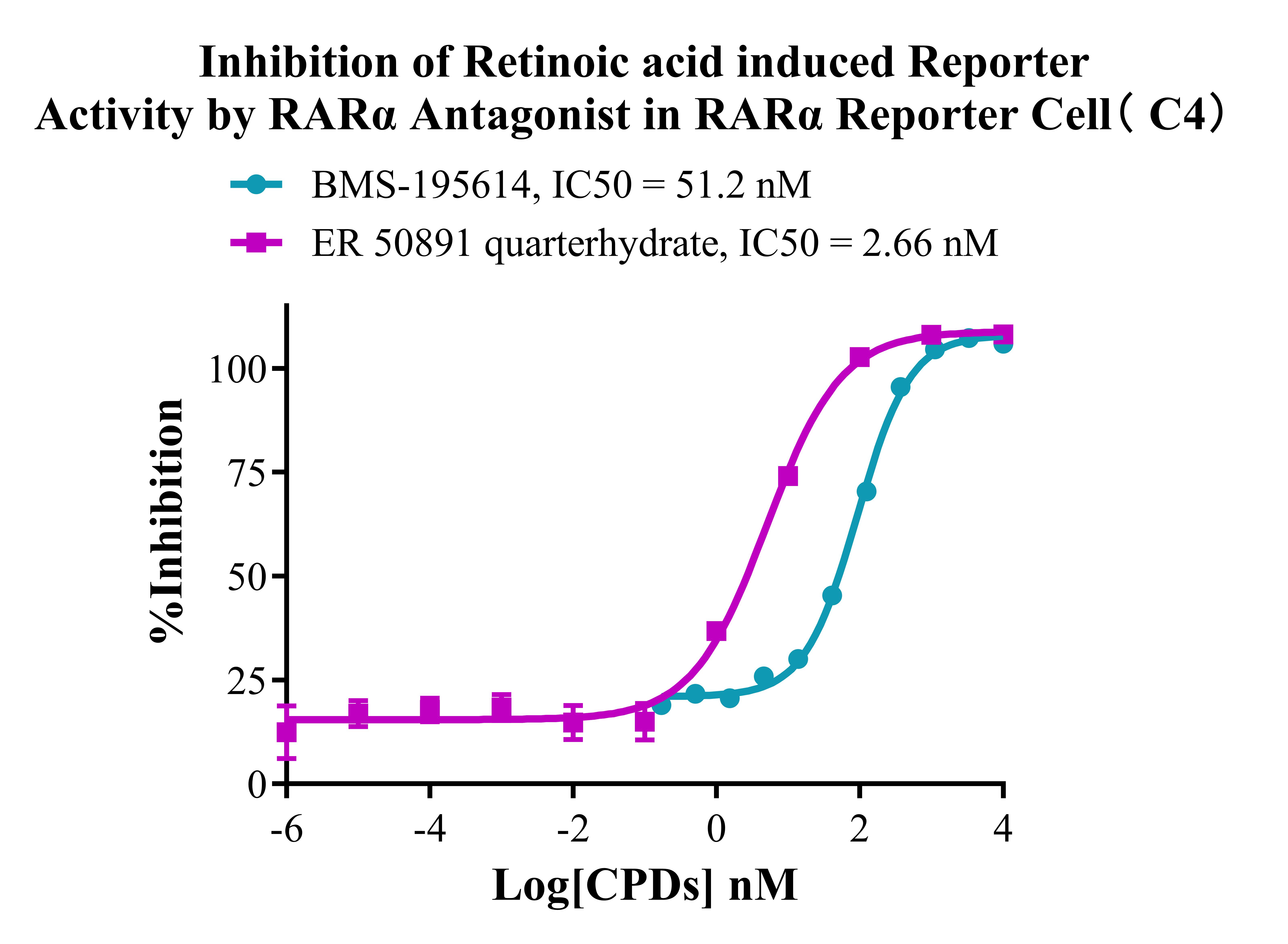 Figure 3. Inhibition of Retinoic acid induced Reporter Activity by RARα Antagonist in RARα Reporter Cell(C4).