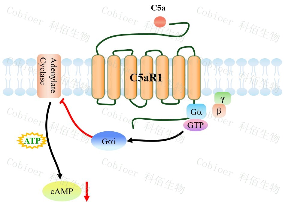 | 補(bǔ)體 C5a 是由補(bǔ)體系統(tǒng)經(jīng) C5 轉(zhuǎn)化酶裂解 C5 產(chǎn)生的強(qiáng)效炎癥介質(zhì),作為核心過(guò)敏毒素 通過(guò)結(jié)合受體 C5aR1/C5aR2 驅(qū)動(dòng)中性粒細(xì)胞趨化、氧化爆發(fā)及炎性因子(IL-6/TNF-α)釋 放,在膿毒癥中誘發(fā)“細(xì)胞因子風(fēng)暴”,在自身免疫?。ㄈ珙愶L(fēng)濕關(guān)節(jié)炎)中促進(jìn)組織侵 蝕,在腫瘤微環(huán)境募集髓系抑制細(xì)胞(MDSC)介導(dǎo)免疫逃逸。 C5aR1(CD88)是補(bǔ)體過(guò)敏毒素 C5a 的高親和力 GPCR,主要表達(dá)于髓系細(xì)胞(中性 粒細(xì)胞、單核細(xì)胞、肥大細(xì)胞),通過(guò)激活 Gi/Gq 蛋白-PI3K/MAPK 通路驅(qū)動(dòng)炎癥級(jí)聯(lián)反應(yīng)。 |