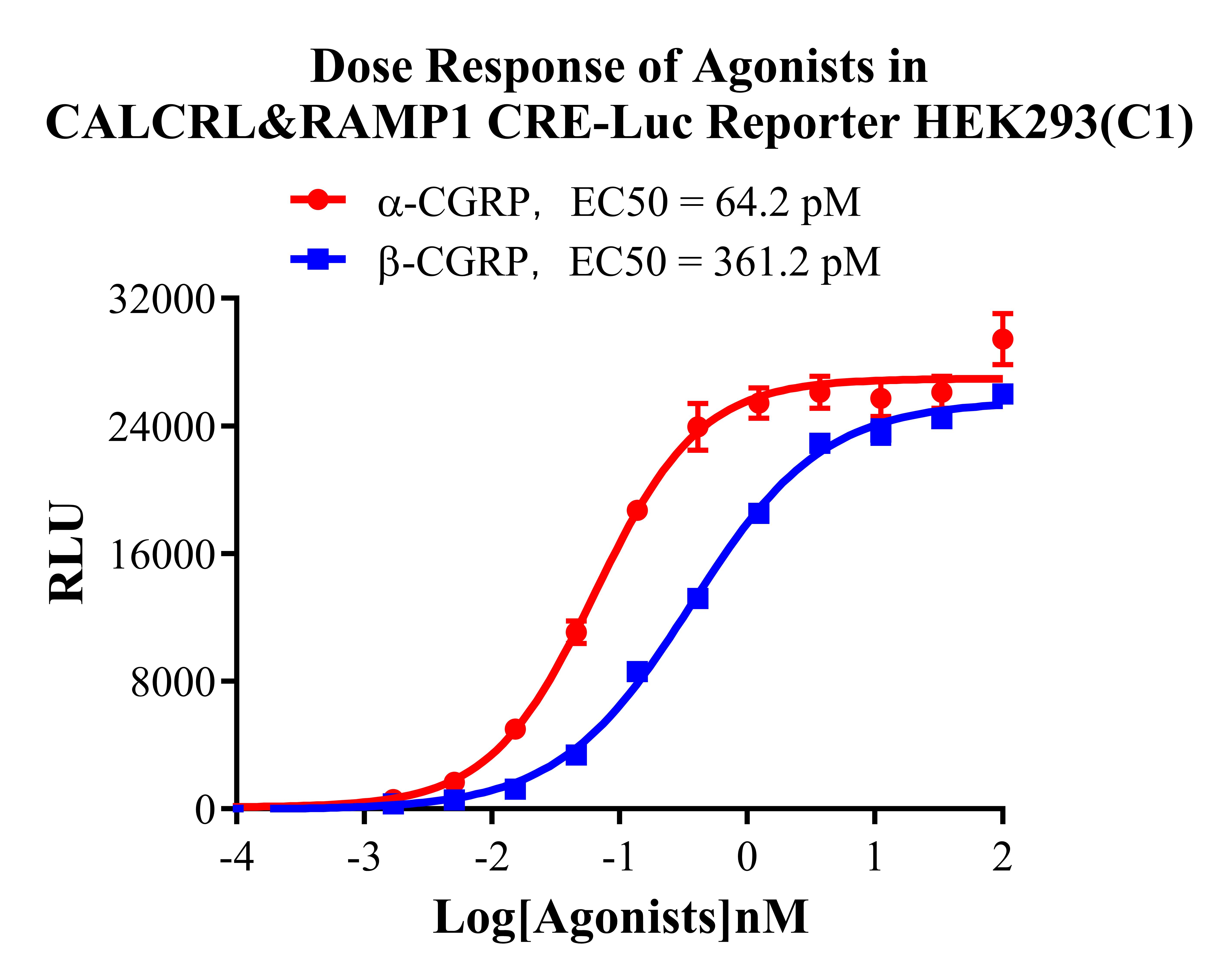 Figure 2. Dose Response of Agonists in CALCRL&RAMP1 CRE Luc Reporter HEK293 Cells (C1).