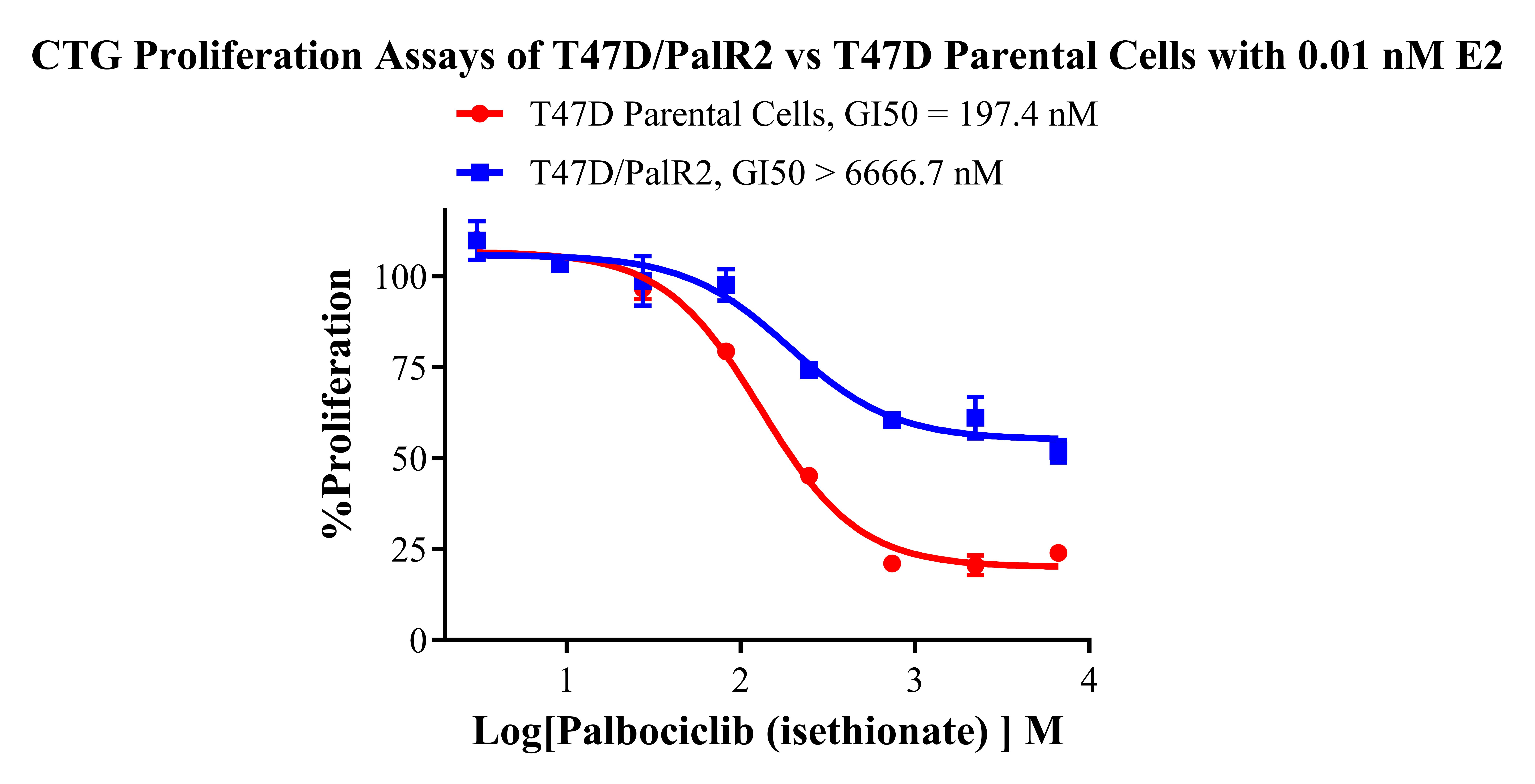 Figure 1. CTG Proliferation Assays of T47D/PalR2 vs T47D Parental Cells with 0.01 nM E2.