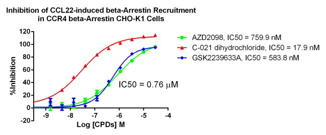 Figure 3. Inhibition of CCL22-induced beta-Arrestin Recruitment in CCR4 beta-Arrestin CHO-K1 Cells..