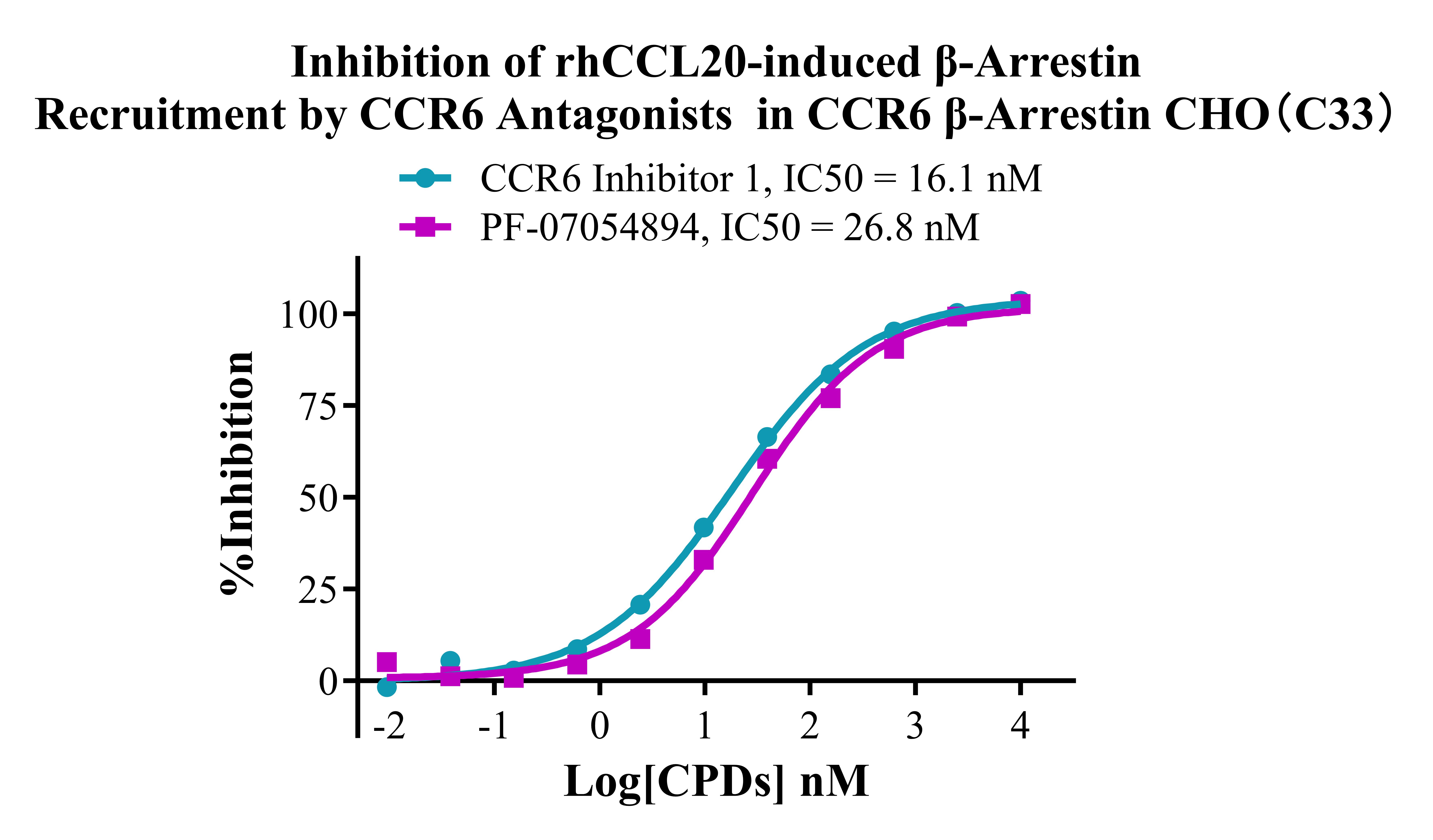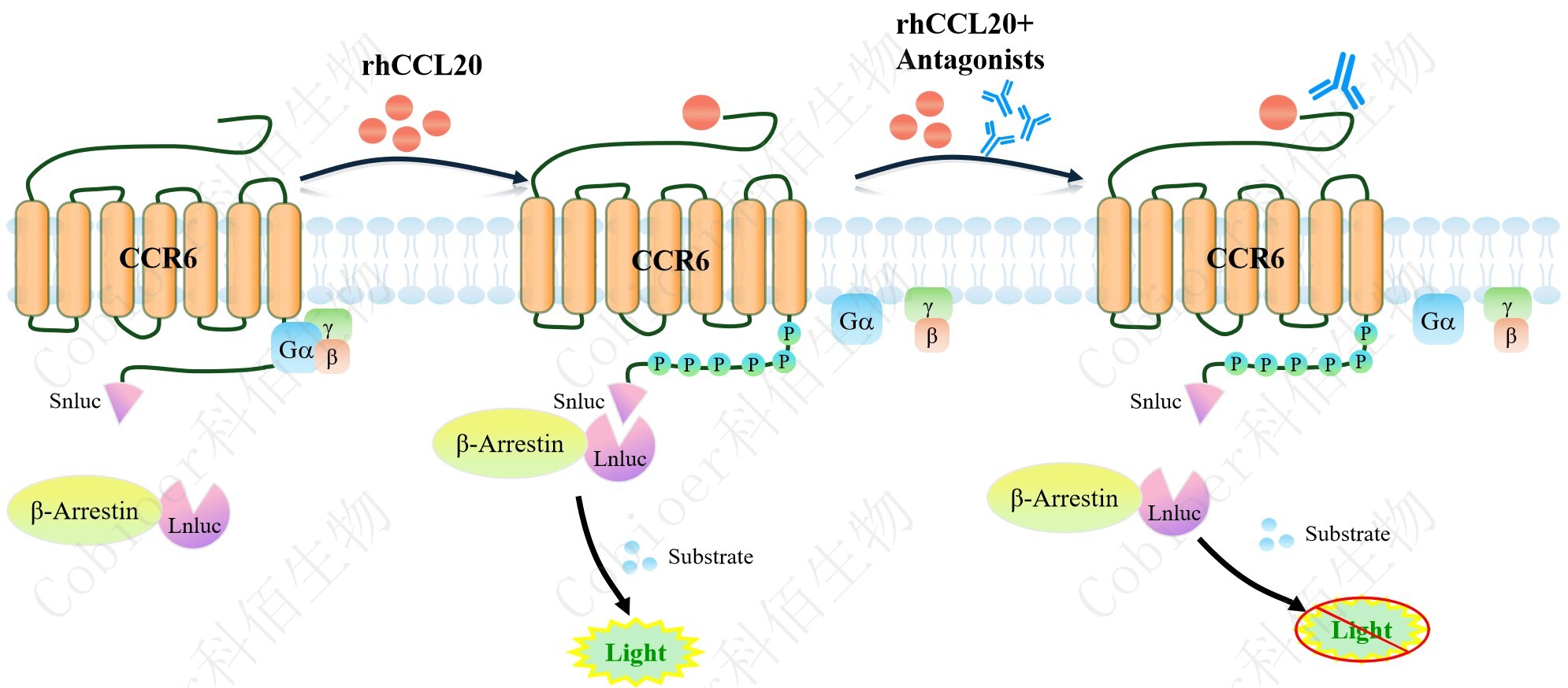 CCR6 β-Arrestin CHO 報告基因藥靶模型很好的模擬了體內(nèi) CCR6/β-Arrestin 的信號轉(zhuǎn) 導(dǎo)過程,原理見下圖所示。![]() Figure 1. CCR6 β-Arrestin CHO 細胞模型原理圖 |