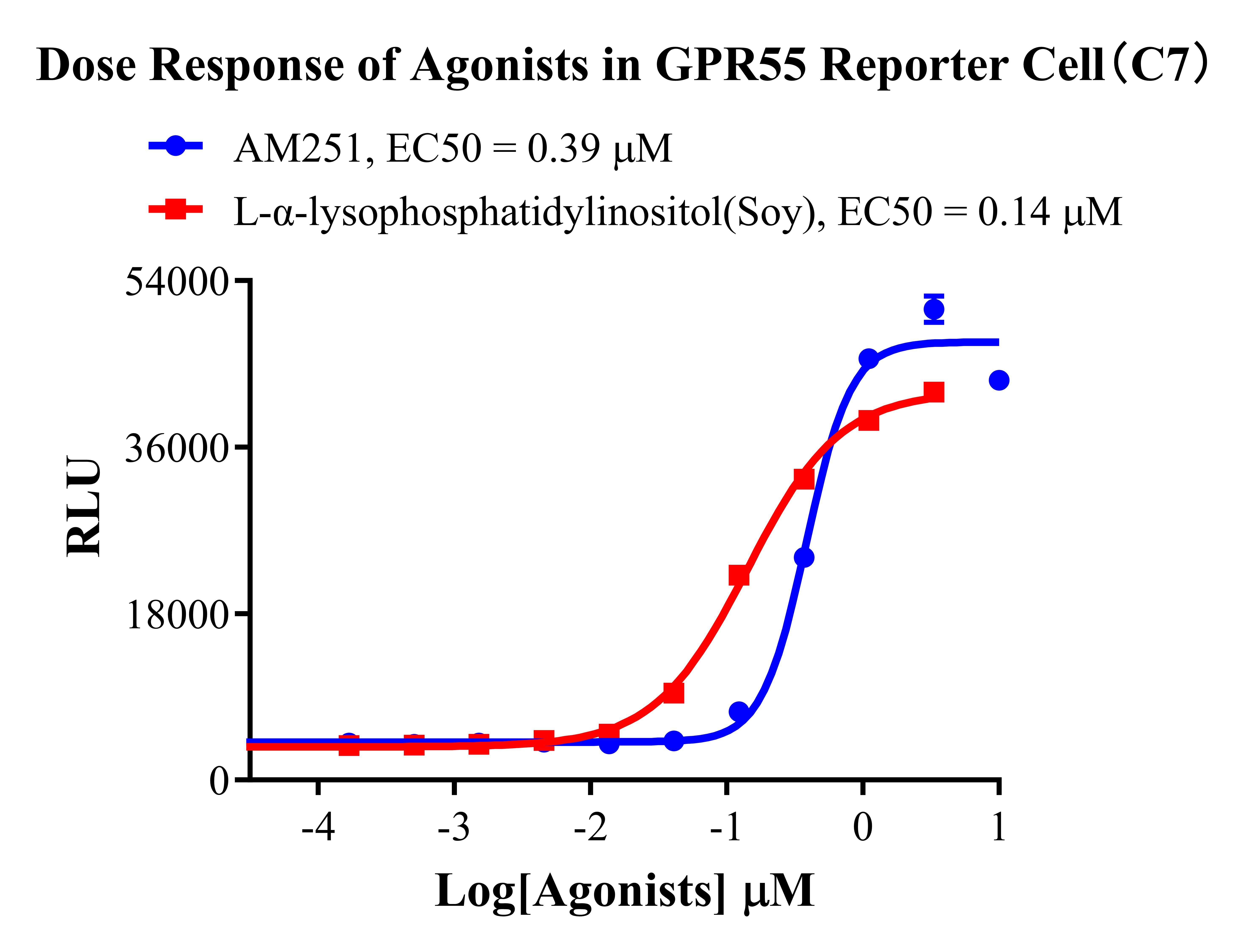 Figure 2. Dose Response of Agonists in GPR55 Reporter Cell(C7). |