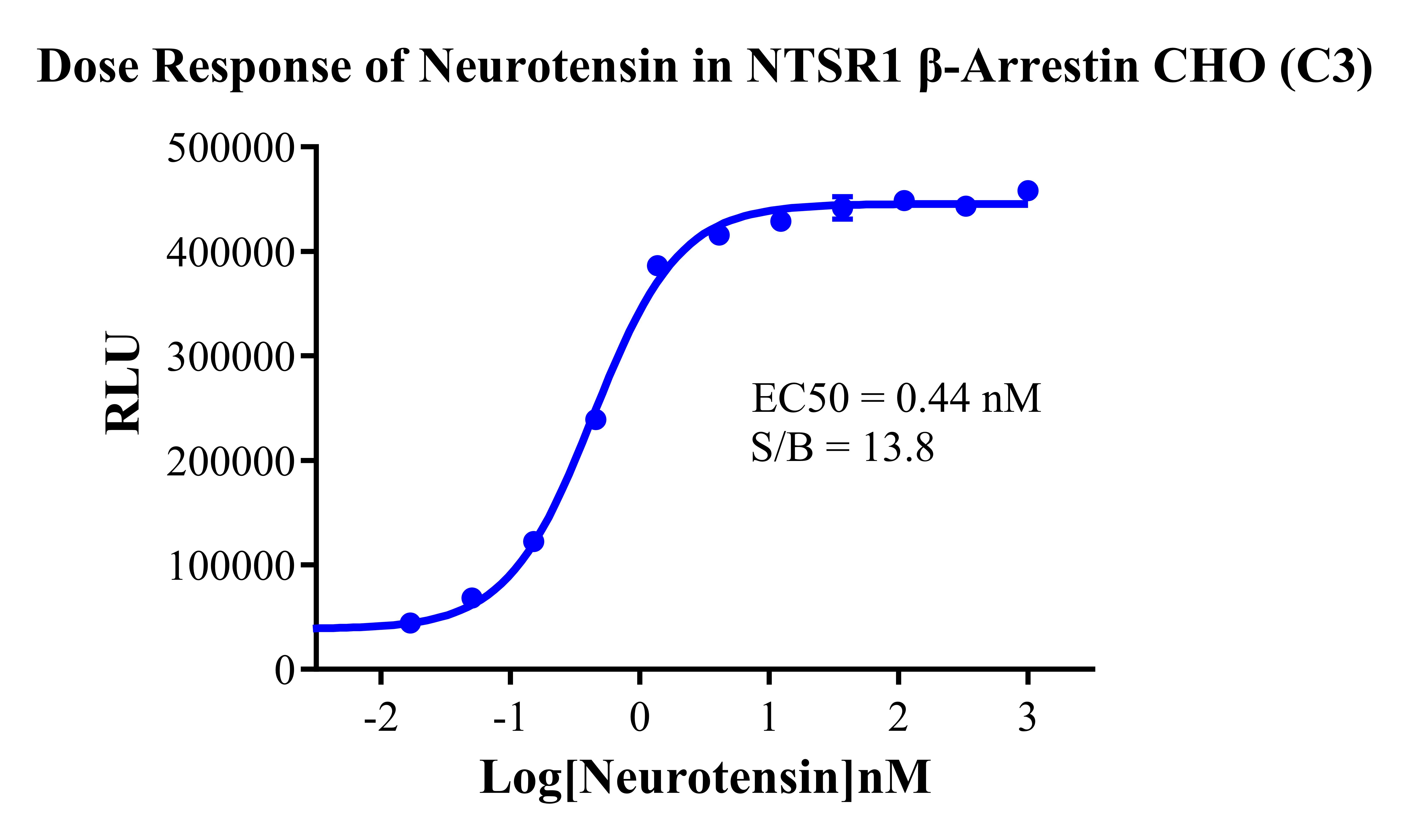 Figure 3. Dose response of Neurotensin in NTSR1 β-Arrestin CHO (C3).