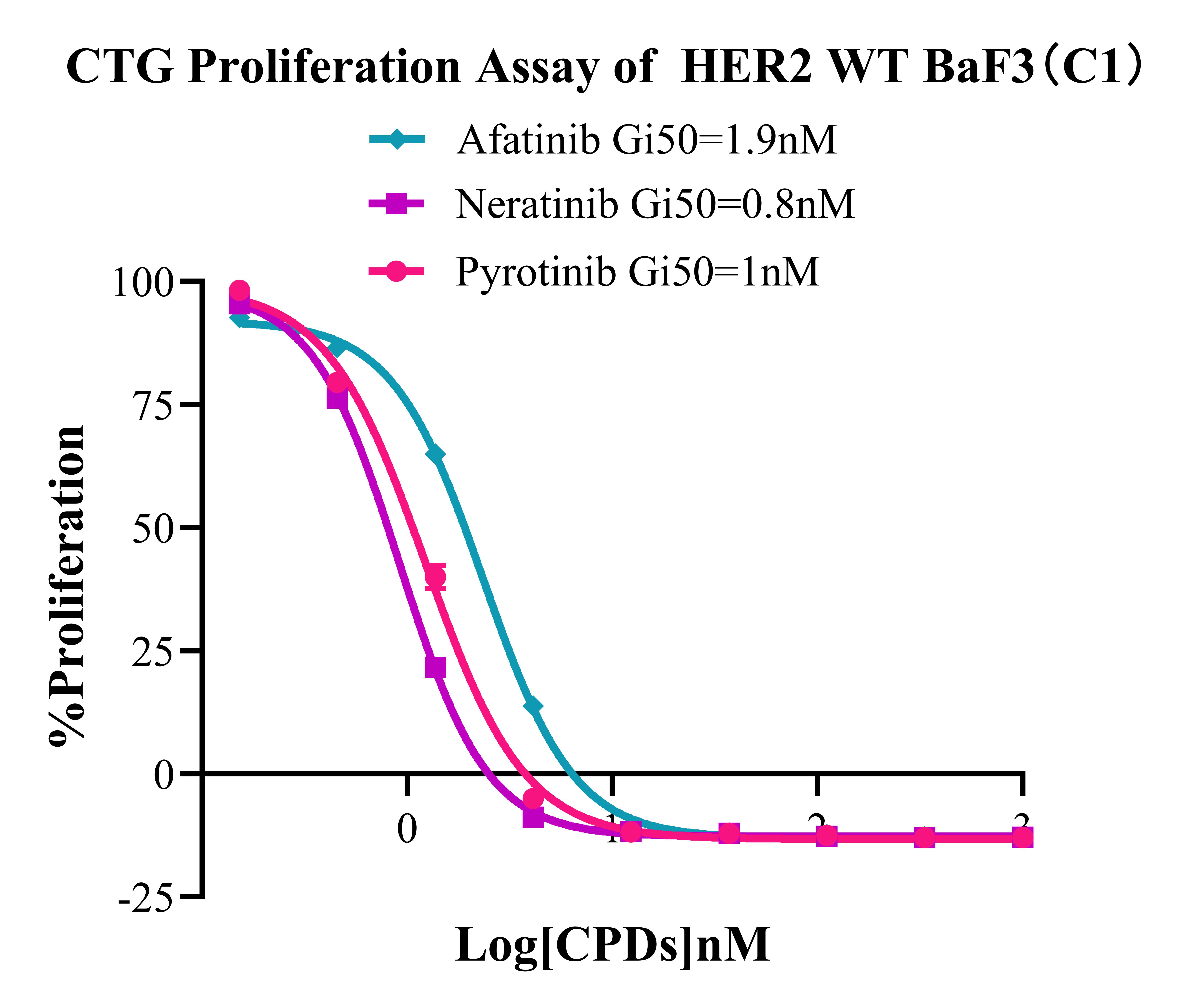Figure 3. CTG Proliferation Assay of HER2 WT BaF3(C1).