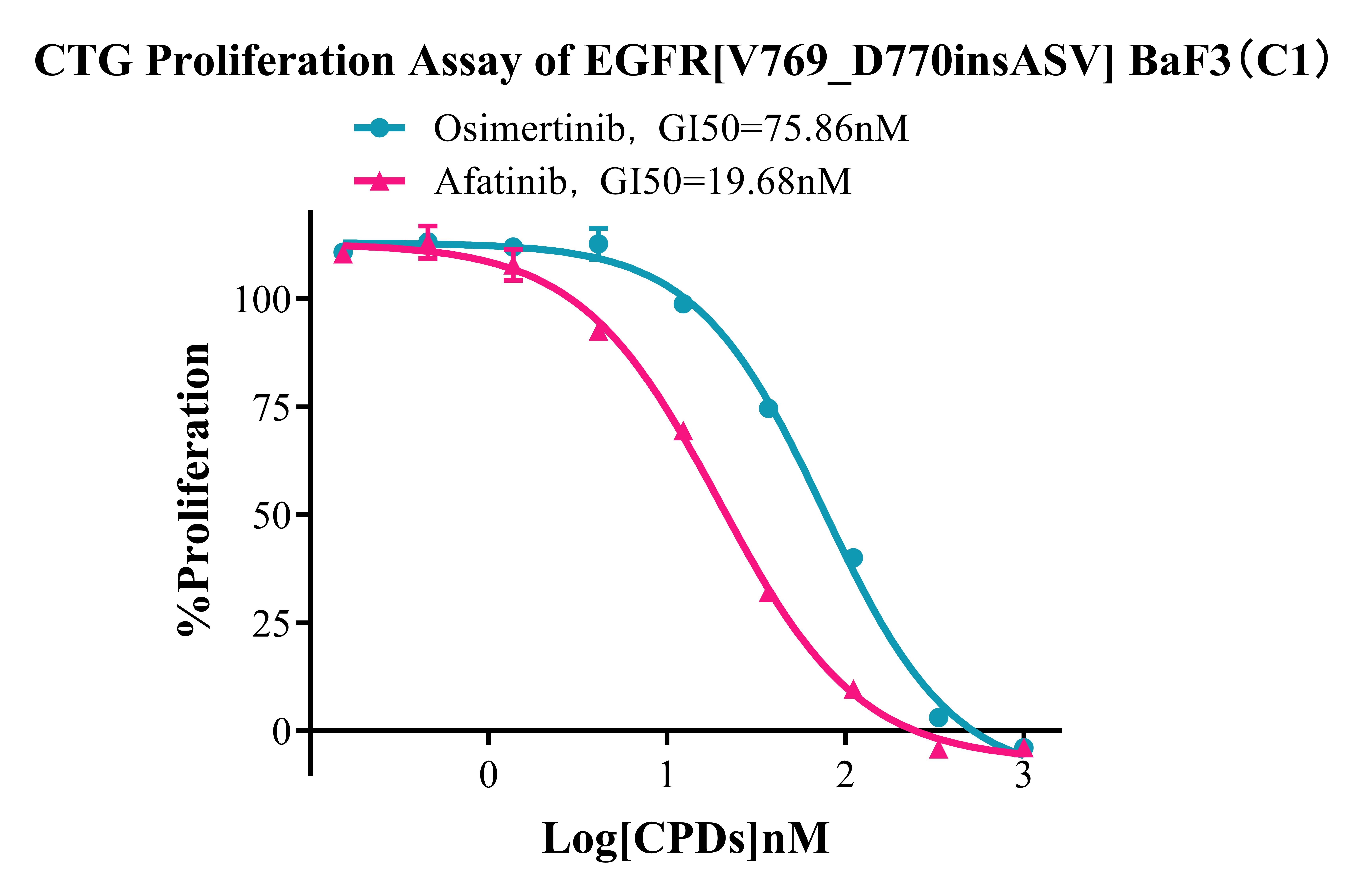 Figure 4 . CTG Proliferation Assay of EGFR [V769_D770insASV] BaF3(C1). |