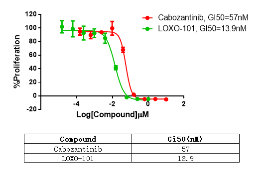 Figure 2. Anti-proliferation assay of two reference compounds on the ETV6-NTRK3/BaF3 Stable Cell Line